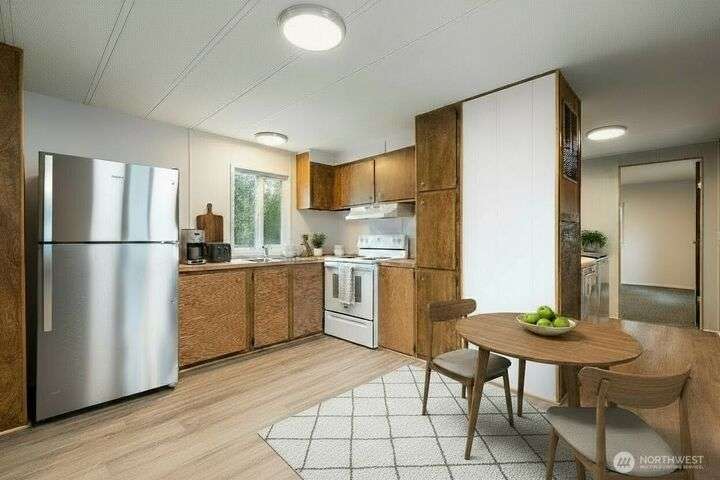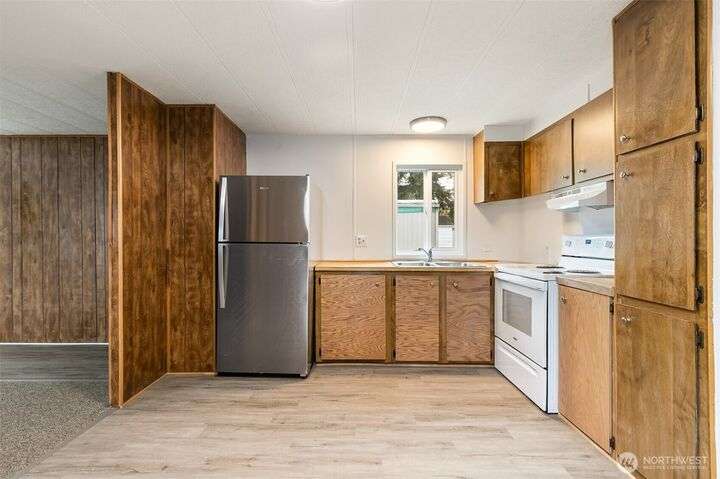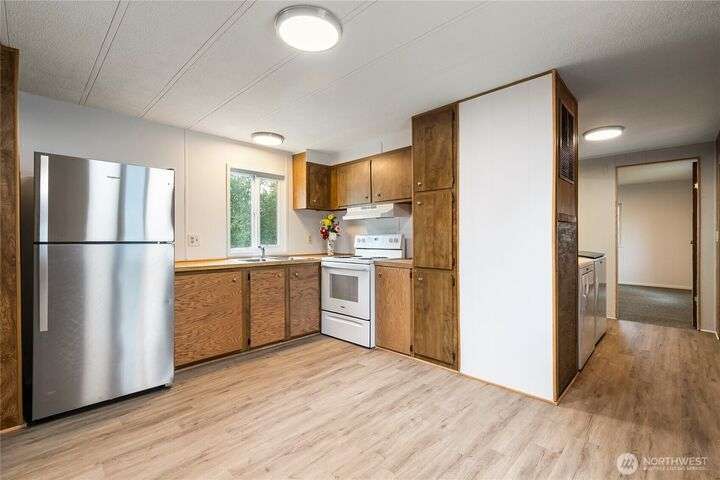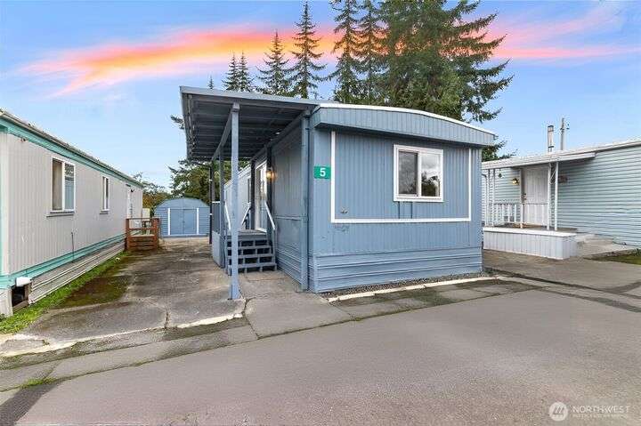 Cozy and move-in ready, this 2-bedroom, 1-bath home in the quiet Bel Aire Trailer Park is full of thoughtful updates and charm. Fresh paint and new flooring throughout create a clean and inviting living space. New appliances, including refrigerator, stove, washer, and dryer, make daily life simple and stress-free. Enjoy added comfort with new underfloor insulation, and extra storage with your private shed. With low $600 monthly pad rent covering water, sewer, and garbage, this home is both affordable and convenient. Just minutes from I5 and downtown Blaine’s shops, restaurants, and waterfront. This is the perfect spot to relax, enjoy the community, and truly feel at home.