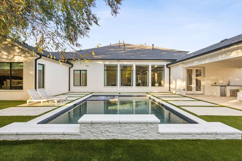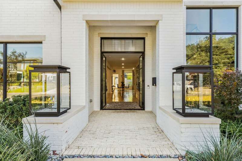 Located in the heart of the prestigious Preston Hollow neighborhood, this custom home, completed in 2021 by acclaimed builder James Canterbury, exemplifies modern design and luxurious functionality. The grand entry with a floating glass staircase introduces striking architectural detail and natural light throughout. The open-concept main level is ideal for entertaining, featuring a full wet bar, designer lighting, and a bonus media room. The chefs kitchen impresses with a Wolf double-oven range, oversized Sub-Zero refrigerator, and a stunning waterfall island perfect for gatherings and gourmet prep. Upstairs, a spacious game room and three ensuite bedrooms offer privacy, comfort, and generous built-in storage. Since completion, the owners have added numerous luxury upgrades, including an AquaSure water purifier, custom window shades and drapery, built-in cabinetry, beautifully book matched stone on the fireplace, and upgraded chandeliers. Outdoor enhancements elevate both style and functionality, full turf installation with a golf putting area, security cameras and motion lighting, illuminated address signage, added parking with concrete pads, and an EV charging port. The private backyard oasis features a sparkling pool and integrated spa, an inviting outdoor living area with fireplace and kitchen, and sleek concrete pads surrounded by lush turfperfect for both entertaining and relaxation. This exceptional residence offers effortless access to premier shopping, dining, and major highways, embodying the best of Dallas luxury living.