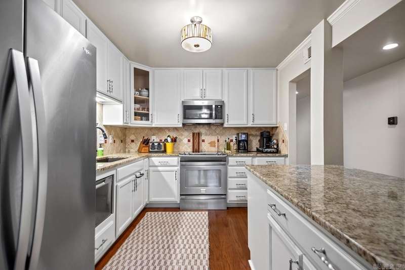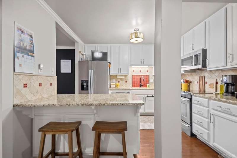Welcome to this ideally located condo! The lower level features a spacious bedroom w/an adjoining full bath. The kitchen is truly the heart of the home, boasting beautiful granite countertops & sleek stainless steel appliances. It’s the perfect space for preparing meals, whether for yourself or while entertaining guests. The living area is equally inviting, with a cozy fireplace adding a touch of warmth & ambiance to the space. Large windows allow plenty of natural light to flood in, flowing effortlessly into the dining area. Just off the living room, the outdoor space is a true highlight. Backing up to a tranquil green space, this private retreat offers the perfect setting for relaxing. Upstairs, you'll find the spacious master suite. This large room includes its own fireplace, a private balcony, & a cozy sitting room lined with bookshelves. This versatile space could be used as a nursery, home office, or an extra-large closet. The master bath features a double vanity. An additional room upstairs offers a bright & airy space complete with a charming window seat & abundant built-in storage. The upstairs bathroom has also been completely renovated, offering a modern, fresh feel.