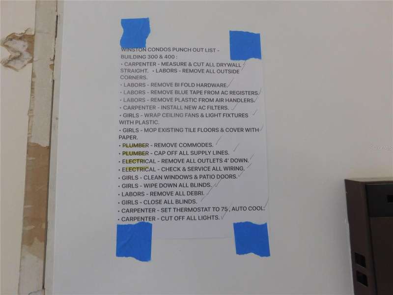 Peaceful charming first floor, two-bedroom and two-bath in Northeast St Petersburg. This unit is gutted as a result of hurricane Helene and Milton. The Condo Assocation is managing the restoration at no cost to the seller and work has already begun. ALL DRYWALL throughout the unit has been replaced above the four foot mark, and new tile, flooring, lower cabinets and countertops are about to be SELECTED AND INSTALLED at no cost to the owner. This community is established in Northeast St Petersburg and boasts of park-like grounds, clubhouse (also being refurbished), sparkling pool, BBQ grills, and shuffleboard. Located near great restaurants, shopping, golf courses, and near award winning beaches. Elevator, mailboxes, and laundry room conveniently at the corner of each building. Parking steps away. THIS UNIT HAS BEEN REMEDIATED AND IS UNDER CONTRUCTION BY THE HOA INSURANCE COMPANY THE REPAIR AND RECONSTRUCTION WILL INCLUDE BOTTOM CABINENTS IN THE KITCHEN, BASEBOARDS, FLOORING, ELECTRICAL, AND PLUMBING. Any top cabinets in the kitchen, upgrades to the flooring, upgrades what so ever is the responsibility of the new owner. The contractors schedule is not set and there is no date for completing the unit and make it a turn-key unit. Great opportunity to get in on the first floor and grab this great location, location, location. Today is the day to step into this two bedroom two bath and make it your own. Hurry and you can choose the NEW floor covering. Choose the NEW tile. Choose the colors of your own choice. When done this unit will shine in a wonderful community. When completed this condo will be listed for a higher price. There are very few condos in Northwest St Petersburg that can compare with this price and low HOA. The owner has moved on and is very motived.