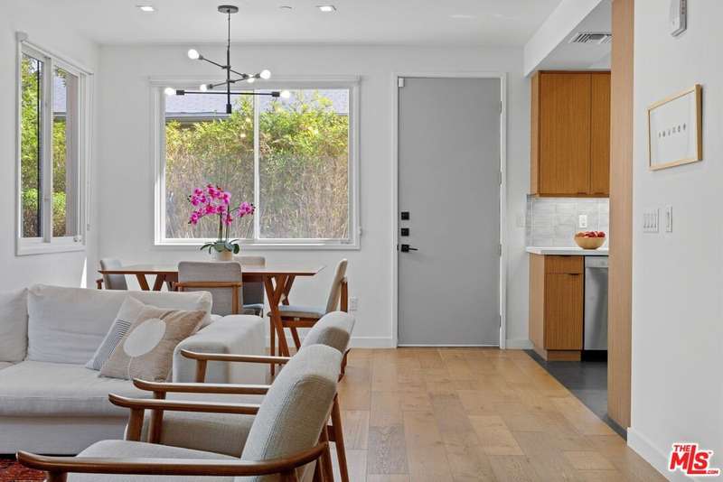 SELLER IS OPEN TO AND LOOKING AT BACKUP OFFERS. Welcome to this stunning Modern 2 bed, 3 bath townhome in the popular Elk Lofts! Light-filled and beautifully designed, this residence offers a warm, inviting atmosphere with the perfect blend of privacy and open-concept living. The spacious primary bedroom with walk in closet, opens to a large balcony with serene sky and tree views. The generously sized kitchen features Bosch stainless steel appliances, sleek cabinetry, and abundant counter space, perfect for any home chef. Gorgeously engineered hardwood floors flow throughout the bright, airy interior, while skylights enhance the natural light that fills the home. If you must slip in some work at home, there is a charming desk space tucked away, upstairs. This unit includes two side-by-side parking spaces in the subterranean garage, along with the home's own huge storage area. Perfectly situated in the only 6 unit building, tucked behind trees, residents enjoy the short proximity to The Americana, The Galleria, and top-rated schools making this area prime! This home is an absolute must-see!