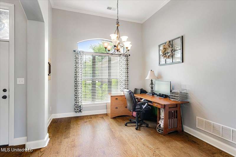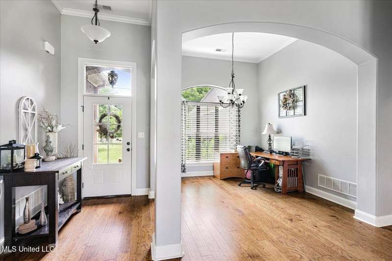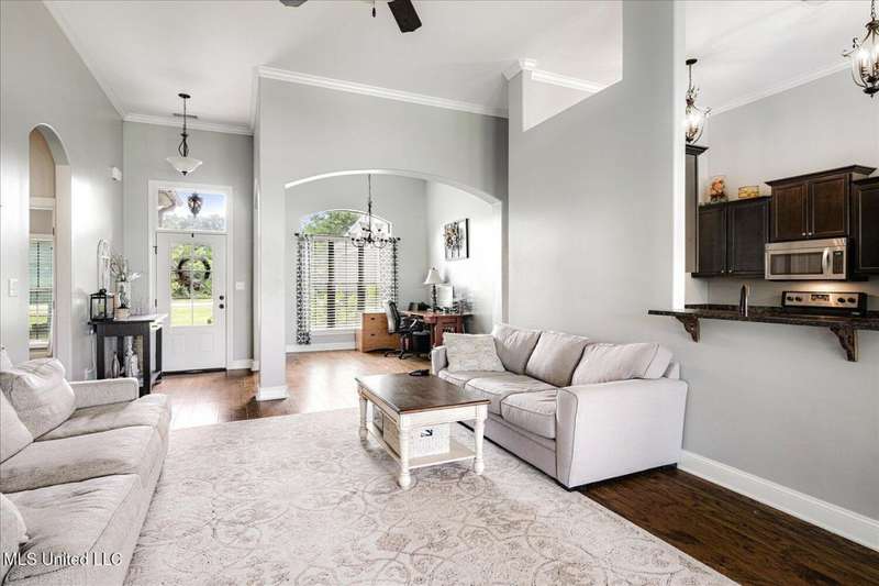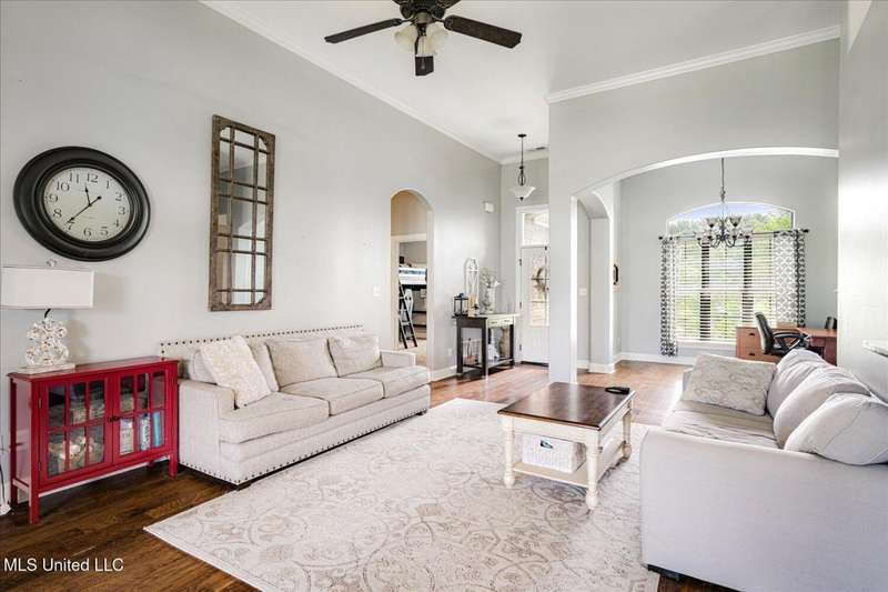 Stunning 4-Bedroom Home with Game Room in Sought-After Kyles Creek! (Three Bedrooms Down!!)Welcome to 6865 Payne Lane ? a beautifully maintained 4-bedroom, 3-bath home nestled in the desirable Estates of Kyles Creek Subdivision in Olive Branch. This spacious home offers a thoughtfully designed split-bedroom floor plan and an array of high-end finishes throughout.Step into the grand great room, where soaring 18-foot ceilings, a corner gas log fireplace, and elegant crown molding create a warm, inviting atmosphere. The formal dining room boasts rich hardwood floors, while the eat-in kitchen features a tile floor, breakfast bar, and plenty of space for casual dining.Upstairs, you'll find a Bedroom, Bath and a large game room ? ideal for entertaining, a home office, or a play area. All bedrooms are generously sized and most include ceiling fans, providing comfort and functionality.The luxury primary suite is your private retreat, complete with a salon-style bath featuring double vanities, a tiled walk-in shower, and ample storage.Additional highlights:Bullnose corners and detailed trim work throughoutSplit bedroom plan for added privacyAccess to neighborhood biking, hiking, and walking trails and community lake!This home combines elegant details with everyday livability, all in a picturesque community known for its natural beauty and outdoor amenities. Don't miss your chance to own a piece of serenity in Kyles Creek!