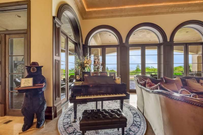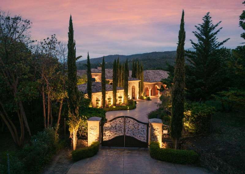 Masterpiece of Art in Southern Oregon, 1st time on the market! Overlooking Jacksonville Mts and City lights! Private park-like 5 acres w/city water! Mediterranean/Old world style w/stone gated entry. 12 car garage. 9904 SQ FT of luxury. Attention to details throughout this amazing property. 4 primary suites, 6 baths, Pebble tec pool and spa, covered patios w/stone fireplace, gated courtyard w/large fountain and guest Casita! Fall in love; 13' double door entry that takes you into a grand great room w/many 9' French doors opening to the outdoor living room, 8 fireplaces and dome ceilings. Large stone fireplace in kitchen/breakfast room. Beautiful kitchen that any chef would love w/butler pantry and catering area w/third sink and wine fridge. Primary suites w/custom tall ceilings. Tuscan Villa with a 12 car garage, elegant formal dining rm with built-ins. Downstairs family, theater and exercise rms. Built & architecturally designed by Mike Pagnini a premier builder in Southern Oregon.