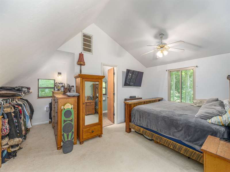 Escape to this charming 2BD/2BA mountain chalet, perfectly perched for long-range views and the peaceful sound of a nearby stream. Thoughtfully updated, the home features a renovated kitchen, main-level bedroom and bath, plus an airy loft with its own full bath?ideal for guests or a home office. Relax on the front porch tucked beneath the trees, offering privacy and a place to enjoy the cool mountain breeze. Recent improvements include central air and a metal roof, both installed in 2023, along with updated windows throughout most of the home. With space to add a garden or outdoor seating, this mountaintop retreat is ideal as a weekend escape or a full-time residence surrounded by nature.