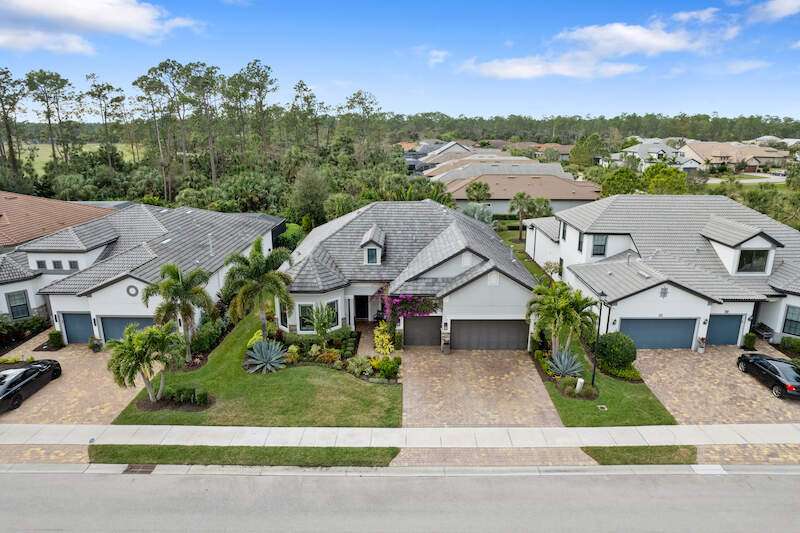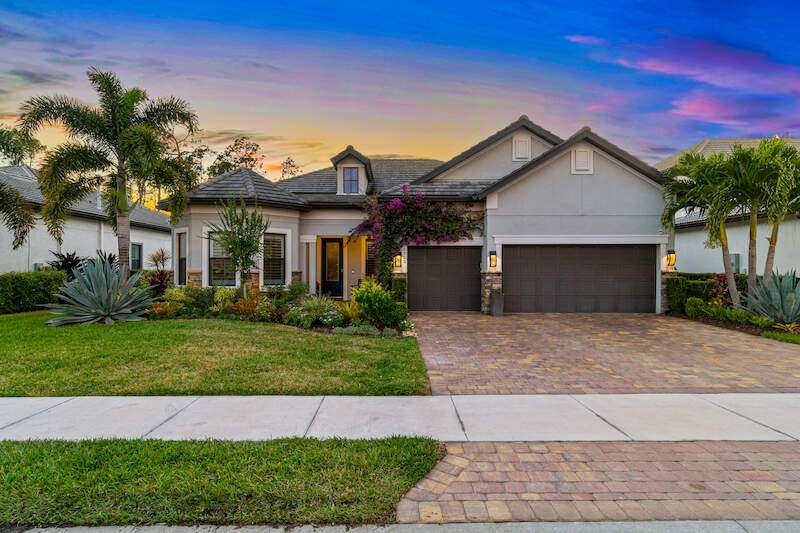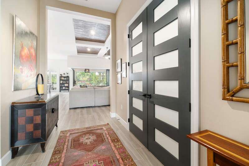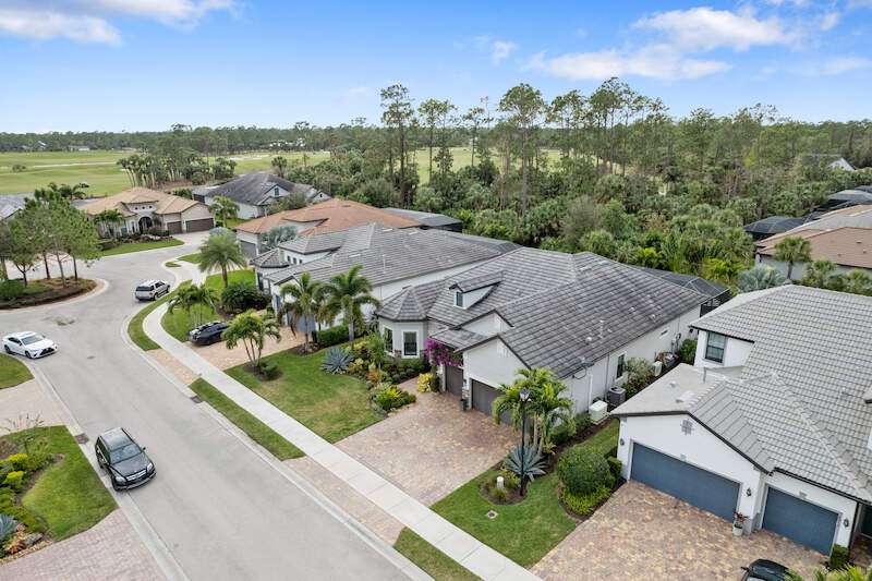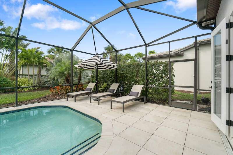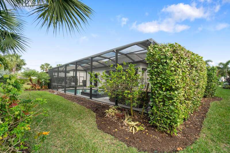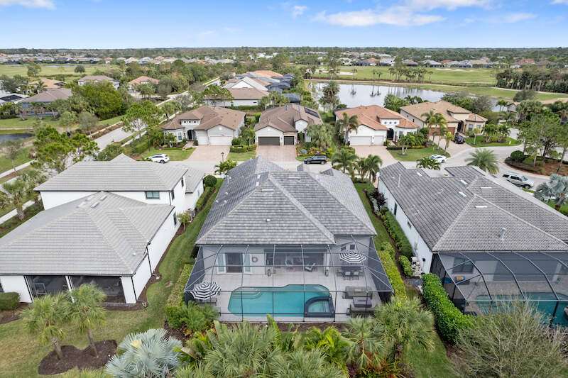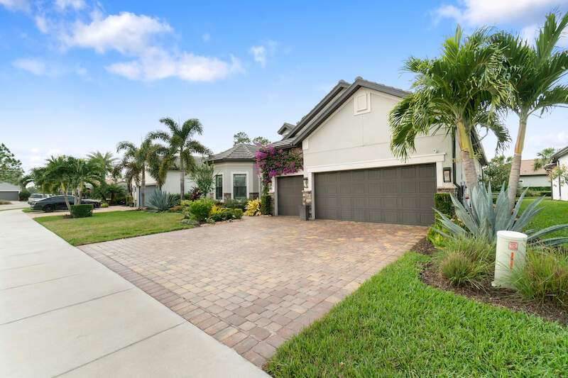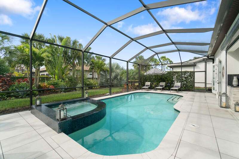 Discover a lifestyle of unparalleled luxury and leisure in the prestigious Greyhawk community. The most desired and meticulously enhanced Pinnacle model, offering 3 bedrooms + den and a 3-car garage, redefines elegance with its flawless design and sophisticated charm. OVER $200k WORTH OF UPGRADES! Designer-style furniture and decor are also available, making it effortlessly move-in ready. Enjoy the rare opportunity of IMMEDIATE GOLF membership - bypass the waitlist and immerse yourself in the world of world-class golf, a privilege rarely found in today's market. As you walk through the grand entrance, framed by vibrant bougainvillea and flowering plants, you'll feel the warmth of a space and tons of natural light. The living room, with its coffered ceilings lined in real wood wallpaper, sets the tone for a home that's equal parts stylish and inviting. Sunlight streams through added French doors in the kitchen and master bedroom, creating a seamless connection to the outdoors. In the kitchen, the details are a chef's dream: upgraded kitchen cabinetry with above lighted glass cabinets, a custom pantry, wine fridge, electric hot water dispenser that ensures your morning coffee or evening tea is always within reach. Every space has been thoughtfully enhanced, from the illuminated mirrors and upgraded lighting to the custom-built closets that keep everything perfectly in place. This home features sleek tile flooring in all areas, and luxurious wood flooring adds warmth and elegance to the master suite. Step outside, and your private oasis unfolds. Nestled on a secluded lot, the home is surrounded by lush landscaping that transforms the space into a serene retreat. As evening falls, custom outdoor lighting casts a warm glow, creating an enchanting atmosphere perfect for relaxing or entertaining under the stars. Entire lanai deck pavers have been removed and replaced by non-slip ceramic tiles. Picture evenings by the saltwater pool and spa, renovated with elegant tile, and controlled effortlessly by a phone app. Cooking in your fully equipped outdoor kitchen, featuring a FireMagic grill, is a true delight. The upgrades continue with features designed for effortless living: hurricane impact doors and all windows, lanai hurricane electric roll-down screens for added safety, a Generac natural gas-fed generator, the air-conditioned and insulated garage, complete with electric storage racks and pull-down attic access, that is as functional as it is impressive. And the list goes on! This is your opportunity to not just own a home but to embrace an extraordinary lifestyle. Schedule your private showing today, and let your story begin here.