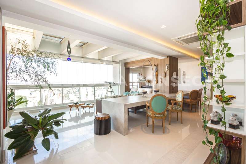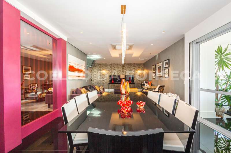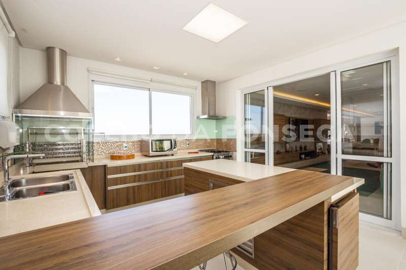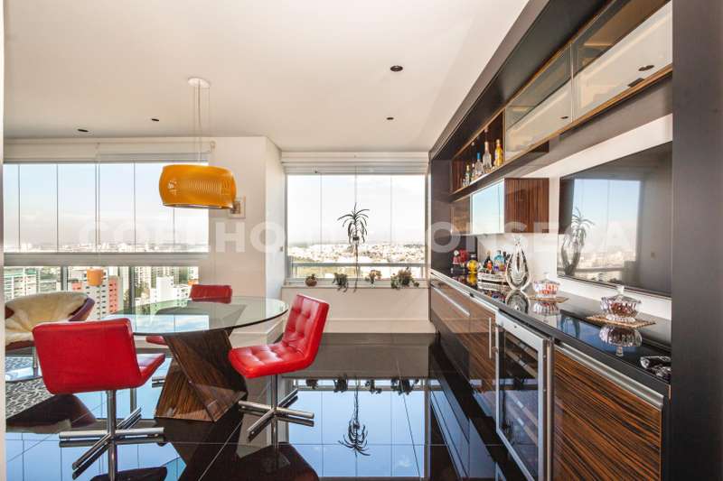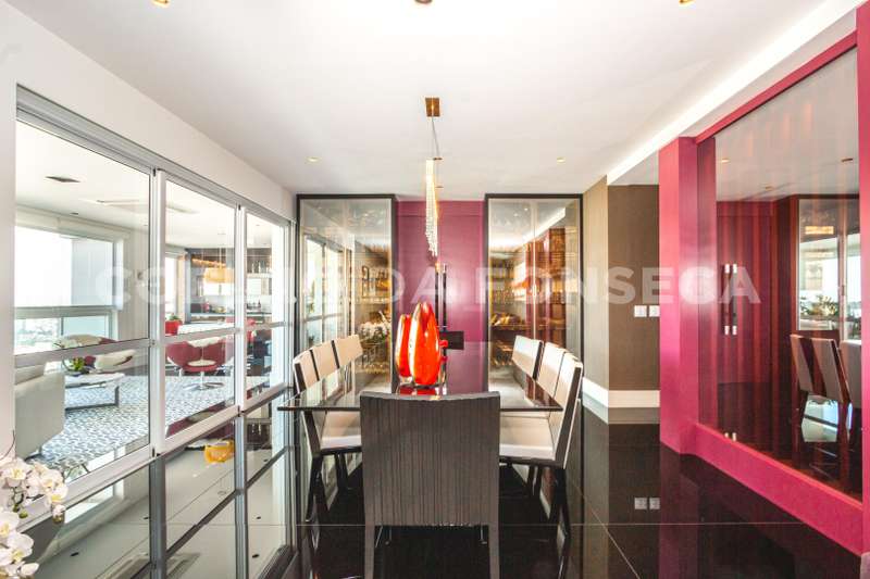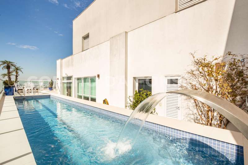 Cobertura espaçosa, iluminada e sofisticada. A parte inferior, possui living amplo para 4 ambientes. Cozinha ampla e repleta de armarios, integrada ao terraço. Três suites, sendo que a master com closet, hidromassagem e banheiro Sr. e Sra. Na parte suerior, encontramos uma suite, amplo living e espaço gourmet completo, além de uma academia particular e completa. Sua piscina de raia com aquecimento.Tudo isso acompanhado de uma vista maravilhosa.
