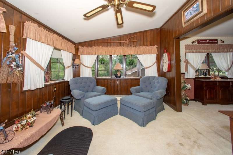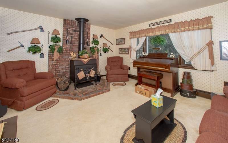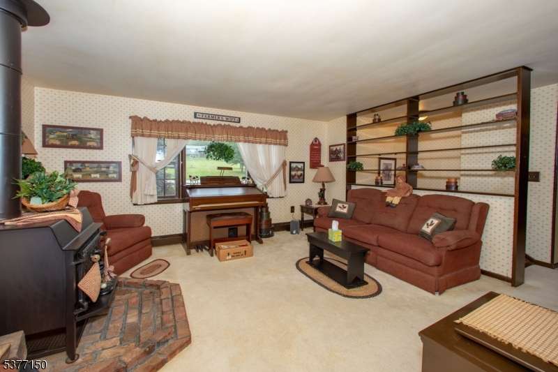 As you turn into the beautifully paved driveway you will no doubt recognize how well kept this home is and has been cared for. Take a look at the handsome stonewalls that border the property, the mature trees, the 2 outbuildings, and the home itself. What a place to call HOME. Once inside the home you will notice how loved this home was. The living room features a woodstove, perfect for those chilly nights to come. A galley, country kitchen with an opening to peer out at guests that may be gathering in the leisure room with a sunken hot tub. Make yourself at home on the lovely porch. This is a place where you will want to dine, take in the charming yard, and just sit a spell. The three bedrooms are charming as well. A 1/2 bath is attached to the primary bedroom. The lower level is home to a family room with a fireplace, den, utility room and powder room. The garage is pristine! Painted, protected floors make this a great place to park your vehicles. Such a wonderful setting. This one is not to be missed.