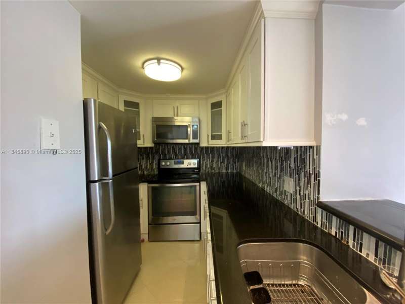 Bright and tastefully this spacious 2/2 condo offers a seamless blend of comfort and charm. The expansive living room features glossy tile floors, a modern ceiling fan, and a seamless flow into an open kitchen with granite countertops and stainless appliances. With a split floor plan, both bedrooms enjoy privacy. Step out onto the private balcony to relax with tranquil treetop views at sunset. Recently updated building upgrades include new laundry facilities, high-impact windows in the common areas, fresh hallway paint, and new carpet. Nestled just one mile from the ocean, this unit provides easy access to South Beach, North Bay Village, and Downtown Miami—all while being surrounded by picturesque low-rise landscaping and vibrant local amenities. 1 year lease minimum. No pets