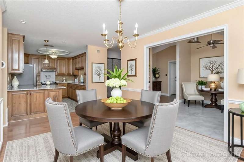 Welcome to 5738 Green Tree Road, nestled just off Knollwood Drive in the Amberly Courtyards subdivision. This charming patio home features three bedrooms, two bathrooms, and a thoughtfully designed split-bedroom floor plan. Step inside to a welcoming foyer that opens into a spacious den with vaulted ceilings, a fireplace, and built-in bookcases. Just beyond, a bright sunroom, with recently installed tile floors, has abundant windows overlooking an inviting courtyard, complete with a raised flower bed ready for your creative touch. The kitchen has been renovated with custom cabinetry, granite countertops, stainless steel appliances, and under-cabinet lighting. It flows seamlessly into a separate dining room, great for entertaining. Each bedroom includes a walk-in closet, providing plenty of storage. Additional highlights include a rear-entry drive leading to a garage, a tankless water heater, a generator, and a laundry room, per seller, roof replaced in 2020. With its inviting layout and abundant charm, this home is ready and waiting for its next owner. Buyer responsible for verifying all measurements and relevant details.