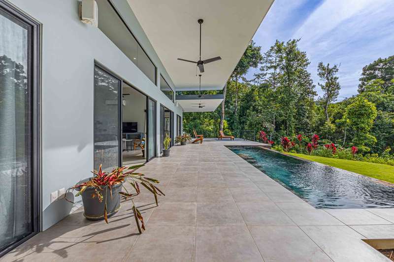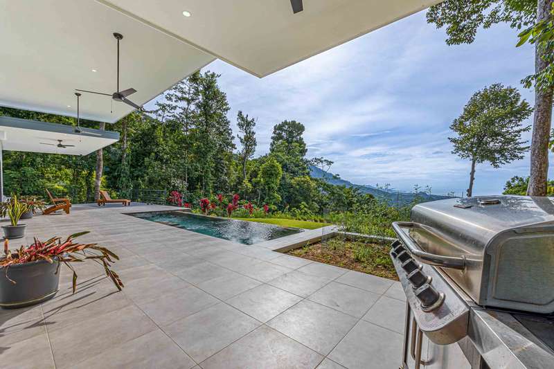 Welcome to your dream home in the exclusive, gated, and guarded community of the Hills of Portalon. Nestled in its own private paradise, this stunning property boasts breathtaking ocean views stretching down the southern coastline, all surrounded by nearly 360 degrees of untouched Costa Rican jungle—a protected legal reserve teeming with vibrant wildlife like macaws, toucans, sloths, and monkeys. Below the home sits a rarity for this area, a year round creek, offering soothing sounds throughout the year.
