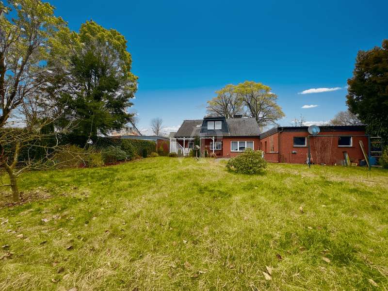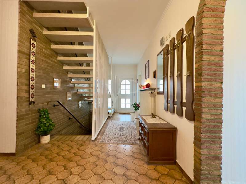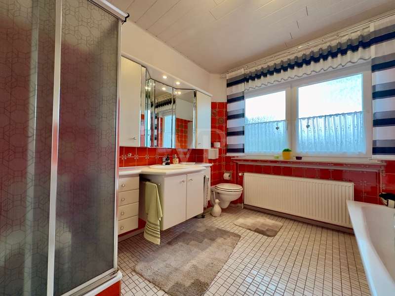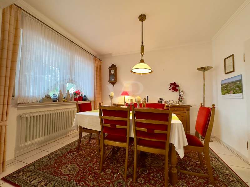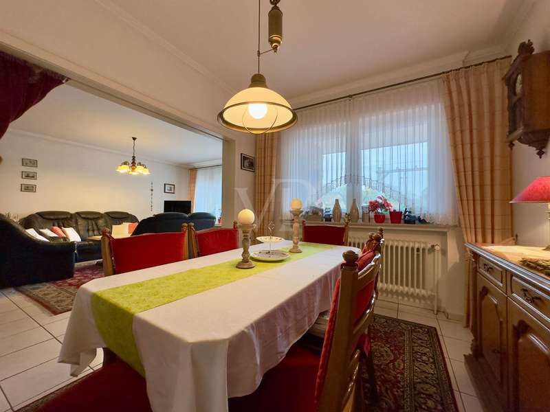 This well-kept detached house, built in 1973, offers a generous living space of approx. 150 m² on a plot of approx. 859 m². There are a total of seven rooms, including five bedrooms, which offer enough space for a larger family or a variety of uses. The first floor has a daylight bathroom with shower and bathtub. The possibility of integrating a further daylight bathroom on the top floor offers additional comfort. The property is in a well-kept condition. In the kitchen, which was redesigned in 2009, you will find high-quality Miele electrical appliances and a granite floor that is both visually appealing and easy to clean. This creates a pleasant ambience and makes cooking a pure pleasure. Another advantage are the windows, some of which are new, which were installed in 2000 and enhance the energy efficiency of the property. The house has a partially covered terrace with an electric awning, which invites you to linger and relax. The south-facing garden is ideal for sun worshippers and gardeners alike and offers numerous design options. The property is fully fenced, providing additional protection and privacy. The cellar offers both an inside and outside cellar entrance, which expands the possible uses. An existing garage with sectional door and pit rounds off the offer and provides space for vehicles and hobbies. Practical outside water connections and a piston pump offer further convenience in the garden area. In addition to the aforementioned amenities, the rooms are designed in such a way that living at ground level is easily possible. This can be particularly advantageous for older residents or people with limited mobility. Overall, this property offers a well thought-out room layout with sufficient space for family, work and leisure. The central location allows easy access to schools, shops and leisure facilities, making it particularly attractive for families. Potential buyers will be impressed by the numerous advantages of this home. Arrange a viewing today to see the qualities of this property for yourself.