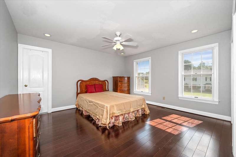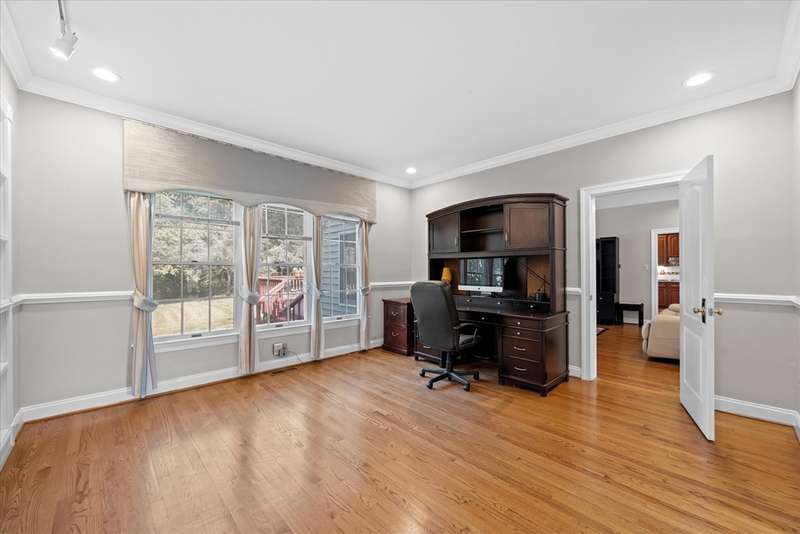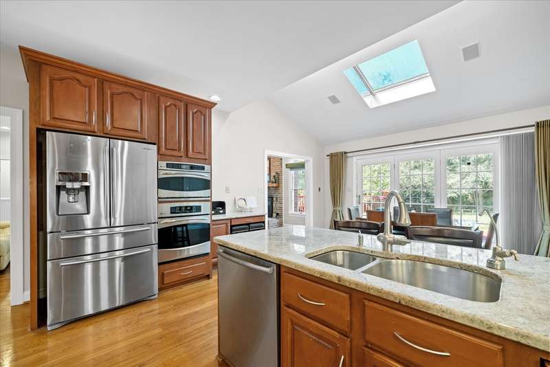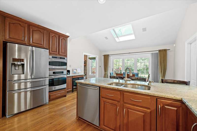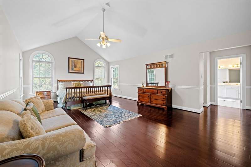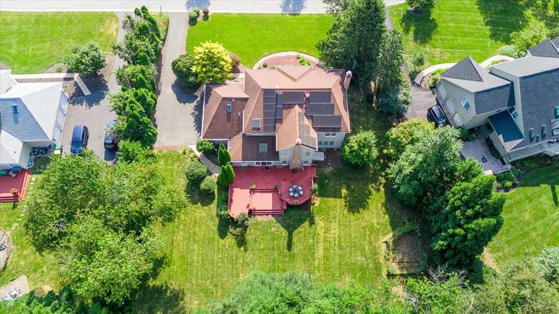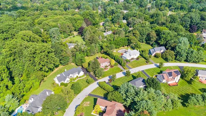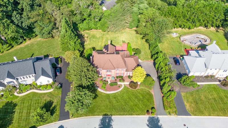 Welcome to your dream home in Sanford Ridge located in the heart of Hockessin! Tucked away on a quiet street in one of the area’s most desirable communities, this luxurious residence sits on a beautifully wooded, PRIVATE LEVEL LOT just over half an acre—perfect for a swimming pool, outdoor living, play, and ultimate privacy. Step through the front door into an elegant foyer featuring a stunning butterfly staircase and rich hardwood flooring that flows seamlessly throughout the main and upper levels. The formal dining room is bright and airy—ideal for hosting gatherings—while the adjacent living room, complete with a cozy gas fireplace, offers a perfect place to entertain or unwind in style. At the heart of the home is a spacious family room anchored by a natural gas fireplace and oversized windows that frame serene views of the professionally landscaped backyard. Just off the family room, a private home office with built-in cabinetry provides a quiet space for work or study. The gourmet kitchen is a chef’s dream, featuring sleek granite countertops, a gas cooktop with range hood, a generous pantry, and abundant cabinet space. A sunlit breakfast area with cathedral ceiling and skylights opens directly onto the expansive deck with 20 X16 motorized awning—creating an effortless indoor-outdoor living experience. A powder room and a separate laundry room with exterior access complete the main level. Upstairs, the open hallway overlooks the grand foyer below, adding architectural interest and a sense of openness. The luxurious primary suite is a true retreat, boasting a vaulted ceiling with circle-top windows, two walk-in closets, a peaceful sitting area, and a spa-like en-suite bath with Jacuzzi tub and separate shower. Also on the upper level are a private guest suite with its own full bath, two additional generously sized bedrooms, and a shared hall bath—providing comfort and privacy for family and visitors alike. The FINISHED LOWER LEVEL offers even more living space, featuring a home theater with projection equipment, theater seating, and ambient lighting—perfect for movie nights. Additional highlights include luxury vinyl plank flooring, a full bath, a dedicated exercise room, a playroom, and a spacious entertainment area with a wet bar, gas fireplace, and built-in surround sound system—ideal for hosting overnight guests or large gatherings. Outside, enjoy your own private backyard oasis, complete with a custom-designed deck, small pond with water lilies, fenced garden, lush landscaping, and a level lawn ideal for outdoor activities and sports. The oversized three-car garage includes newer doors, an epoxy floor, EV charger, water softener, reverse osmosis filtration system and plenty of space for storage, hobbies, or workshop use. This home also features a brand-new driveway, owned solar panels for energy efficiency and reduced electric bills, fresh interior paint including doors and trim throughout, a new front door, newer appliances, a sprinkler system, and a roof and HVAC system both replaced within the last ten years. Perfectly situated just minutes from parks, shopping, dining, and fitness centers, this exceptional home offers luxury living in an unbeatable location. Don’t miss your chance to own this one-of-a-kind property—schedule your private tour today!