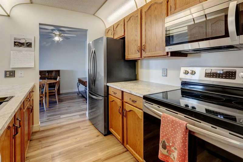 Located beside the Woodside Golf Course and just moments from all the amenities you need, this 55+ condo offers comfort, convenience, and a beautifully updated interior you’ll love coming home to. Step inside to find two inviting bedrooms and a bright 4-piece bathroom, complemented by a series of upgrades completed within the last three years. Enjoy stylish vinyl plank flooring throughout, fresh modern paint, updated laminate countertops, a deep stainless-steel sink, and a full stainless-steel appliance package in the kitchen. The spacious primary bedroom includes a walk-through closet with direct access to the bathroom—an ideal blend of privacy and convenience. An open-concept living and dining area creates a warm, welcoming space for hosting family and friends. Step out from the living room onto your concrete patio, offering easy access to the serene courtyard and gazebo—perfect for morning coffee or relaxing afternoons. The laundry room in this unit has a stackable washer and dryer and also allows for some storage. Owners in this complex also enjoy great shared amenities, including a second-floor activity room with a reading library and gym equipment, plus a formal dining and gathering area in the main foyer. Pets are welcome with board approval, making this a truly inviting place to call home. Whether you’re downsizing or looking for a quiet, low-maintenance lifestyle close to everything, this complex is the perfect fit. Come see for yourself—you won’t want to miss this one!