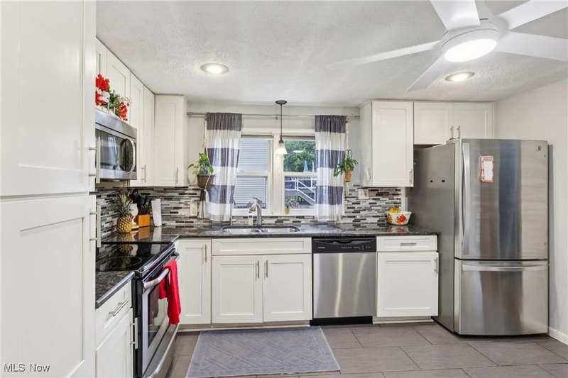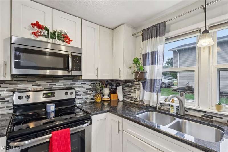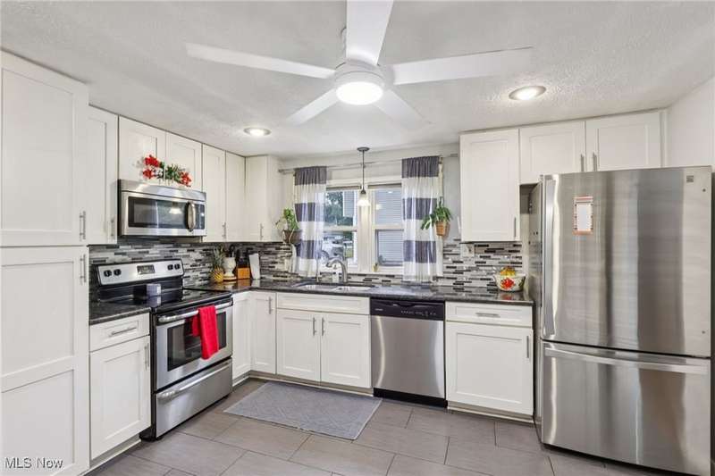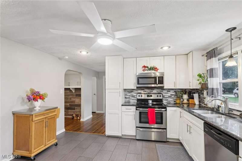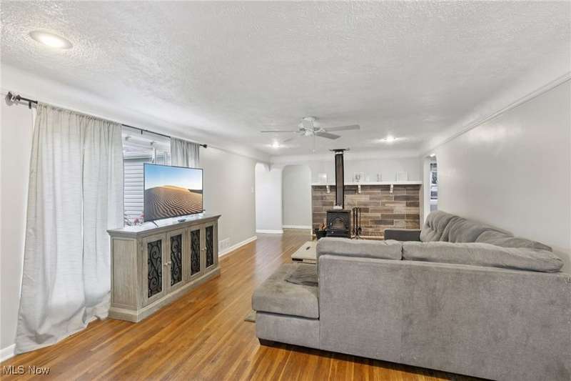 Welcome to this charming Mentor ranch featuring a sunny living room with fresh paint, hardwood floors, picture window, and cozy wood-burning stove. The updated kitchen offers granite countertops, stainless appliances, and plenty of cabinet space, opening to a dining area with sliding glass doors to the deck.The spacious main bedroom has excellent closet space, plus two additional bedrooms all with ceiling fans. The modern bath includes a tiled shower. An oversized attached garage with nature stone flooring and a laundry room provide extra storage. Close proximity to shopping, restaurants, and parks along with the convenient dual driveway access to Reynolds Rd. and Farnham Dr. makes this location easy to love!