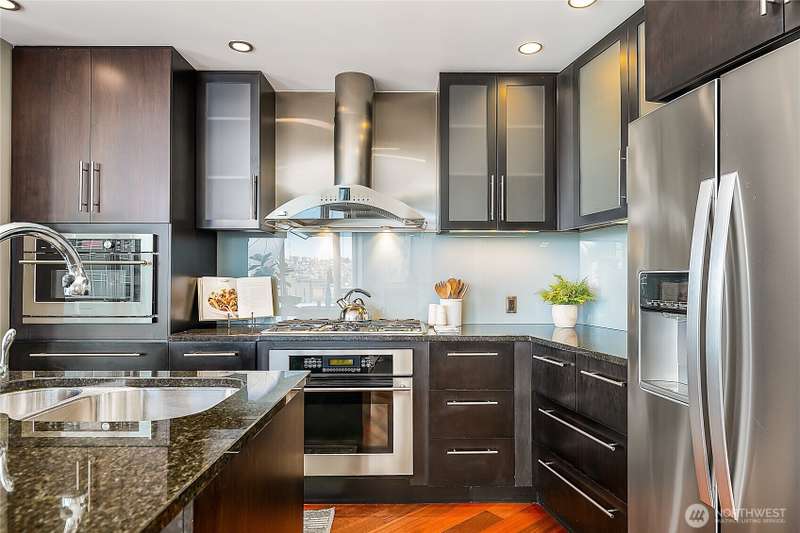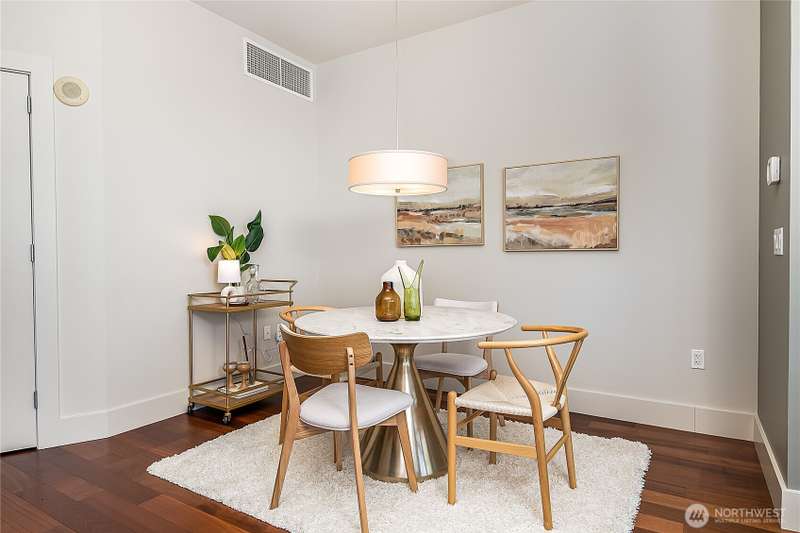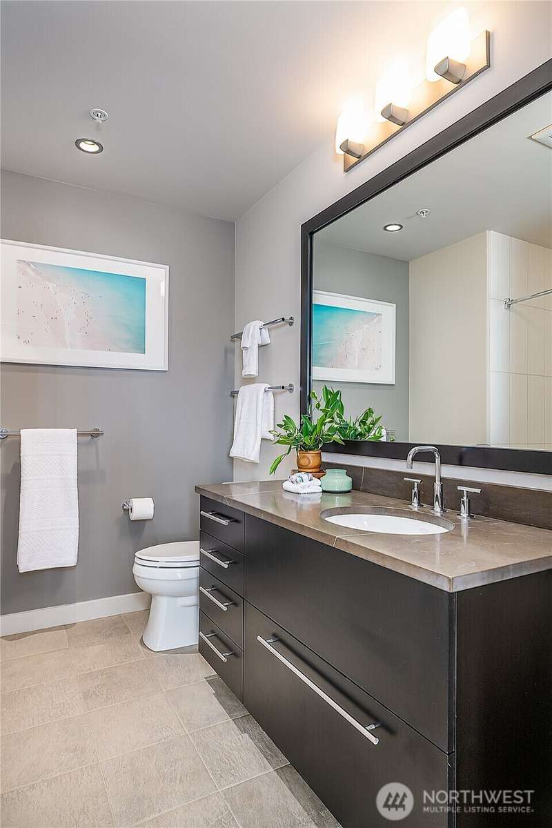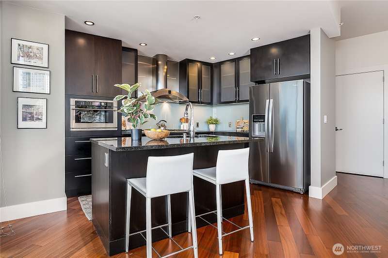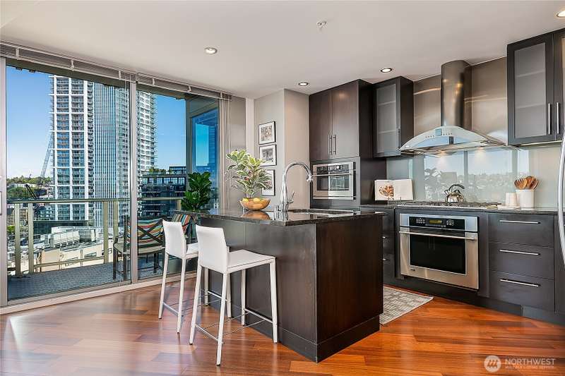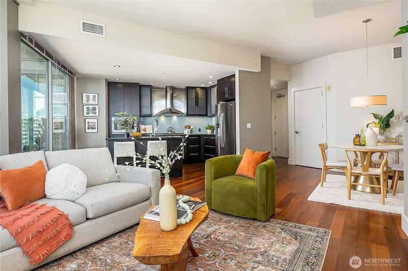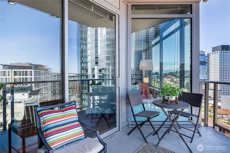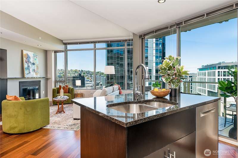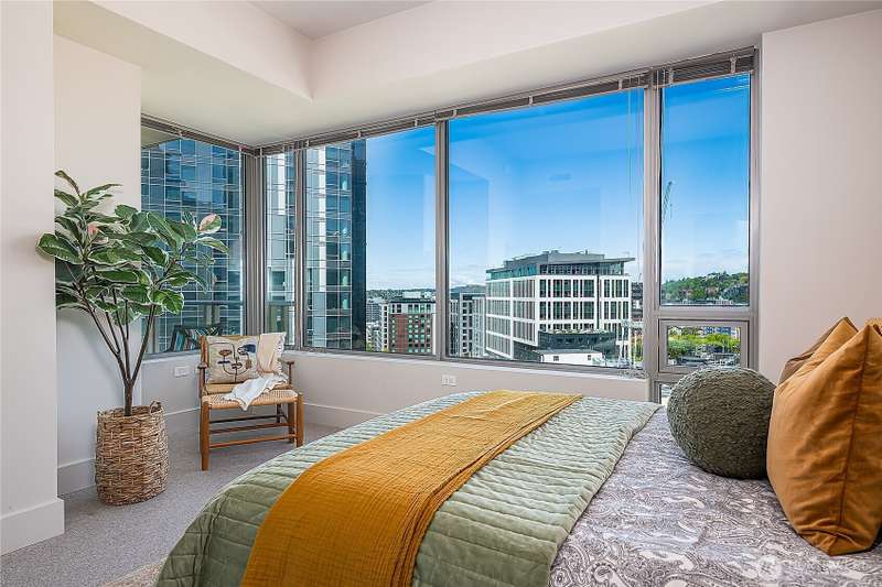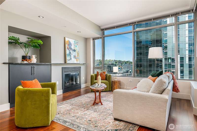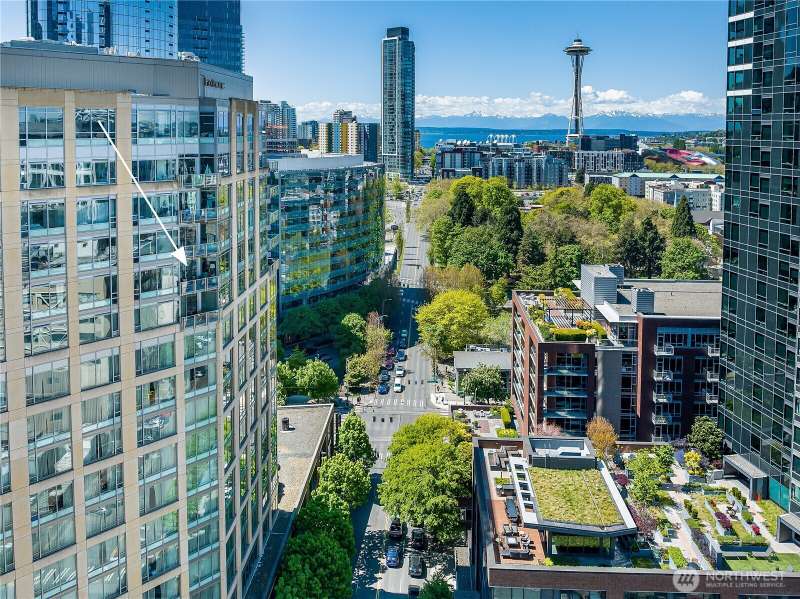 Incredible city views above the new luxury 1 Hotel Seattle. Enjoy 9 ft ceilings with great natural light. Entertain guests in this impeccably maintained home floating above it all with updated chef's kitchen featuring high end new appliances and gorgeous countertops. Two bedrooms with great views, & an extra office/flex space. Plentiful in-unit storage, one private parking space in secure garage and large storage unit. 24 hour concierge, fitness center with sauna, media room, outdoor terrace, business center & guest suite available to owner guests! Don't feel like cooking? Enjoy La Loba, a modern take on Barcelona cuisine or Drift, in the hotel lobby. Whole Foods access w/out stepping outside! Walk to everything in SLU. NO rental cap!