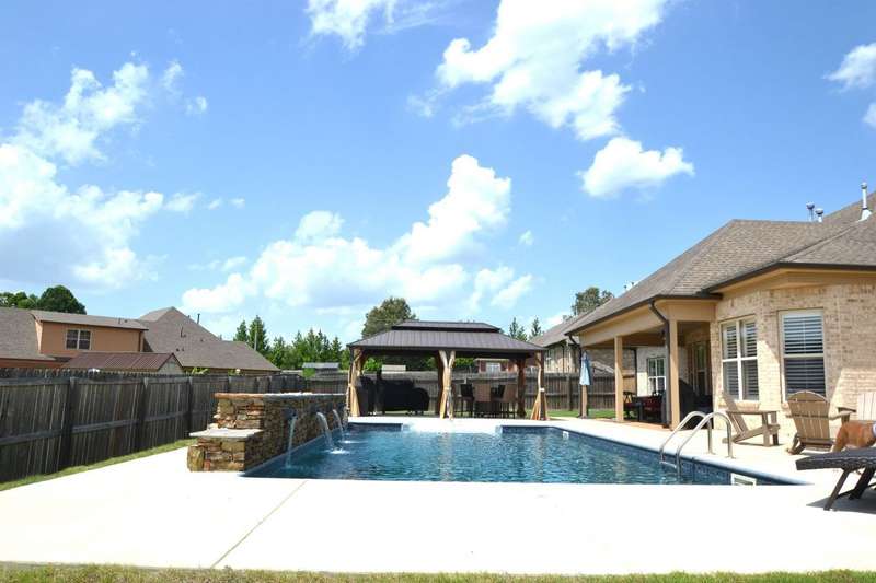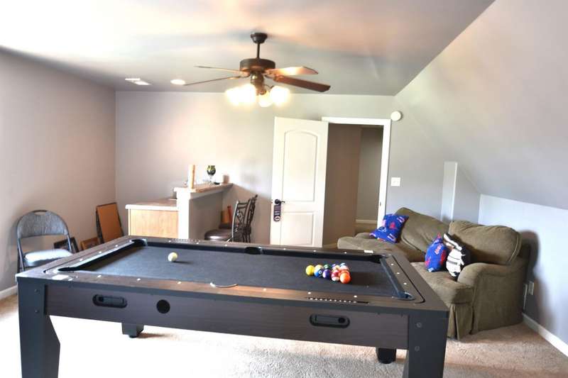Welcome to 50 Burton Place Drive?where style meets function in this former model home packed with upgrades. With 5 spacious bedrooms and 3 full baths, including a Jack & Jill upstairs, this home is designed for comfort and connection. The living room features brand-new real hardwood floors, while the master boasts fresh carpet for a cozy retreat. The heart of the home is a large central kitchen with an open catwalk above?perfect for entertaining or everyday family life. Step outside to your 2-year-old pool with color-changing LEDs and a refreshing stone water wall?ideal for summer gatherings. Upstairs, the bonus room is a true showstopper with a wet bar and a versatile pool table that converts to air hockey and ping pong?all included. Plantation blinds and thoughtful finishes throughout elevate the space. Whether hosting friends or enjoying quiet nights in, this