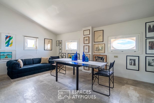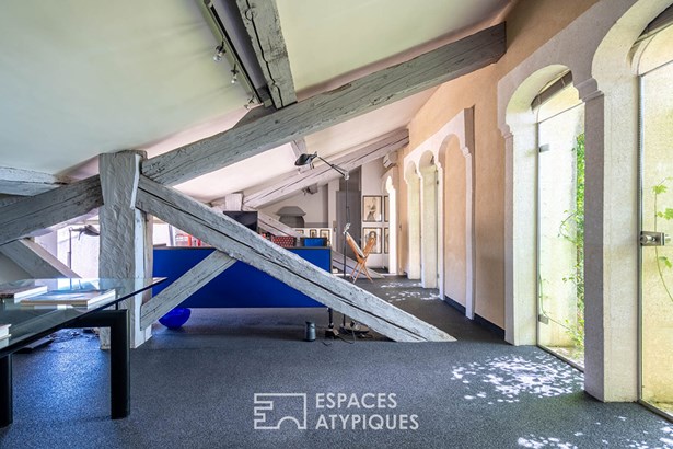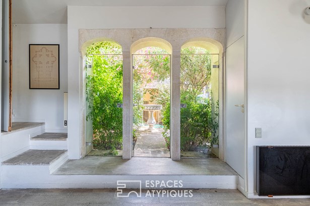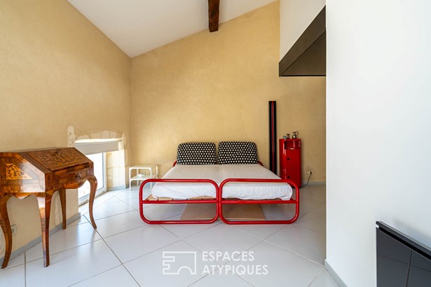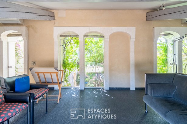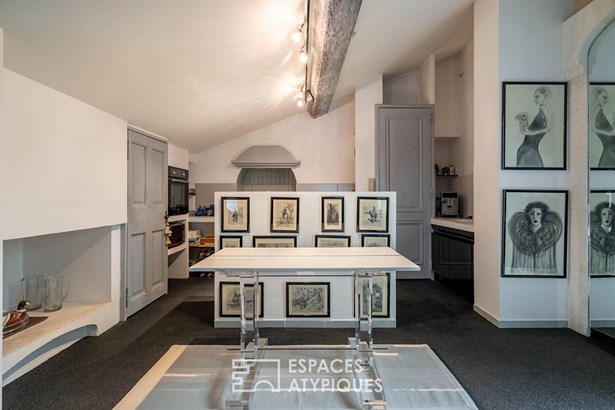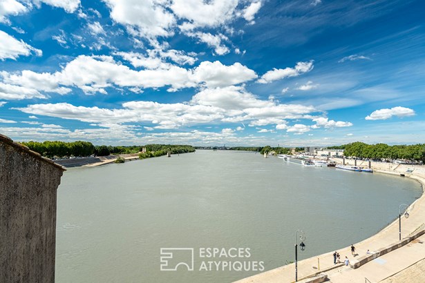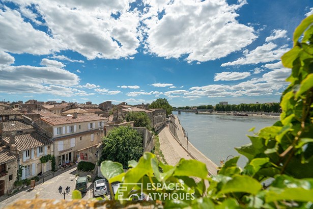 Located in the historic center of the city of Arles, this duplex apartment has a surface area of 150 sqm on the 3rd floor of an old building and offers total serenity in the heart of the cultural excitement of the city. The contemporary renovation signed by an architect has taken advantage of the charm of the old. Its tree-lined terrace with a breathtaking view of the old town and the river invites contemplation. The living room, bathed in light, through a series of glass doors with semi-circular arches ensure natural continuity between interior and exterior and reinforces a Mediterranean lifestyle. This 40m2 volume is structured by a frame with monumental trusses which reinforces its unique character and organizes several living room, office and kitchen spaces, all open and independent. An adjoining room of 25 sqm with independent entrance and bathroom can serve as a second living room or increase the sleeping area. On the lower floor, two large suites share an open terrace. A laundry room and a hallway with plenty of storage space complete this floor. A 50sqm garage and a cellar add to the services of this rare property. ENERGY CLASS: D / CLIMATE CLASS: B. Estimated average amount of annual energy expenditure for standard use, established based on energy prices for the year 2021: between EUR1720 and EUR2360