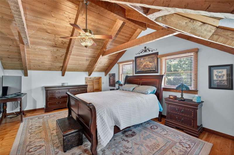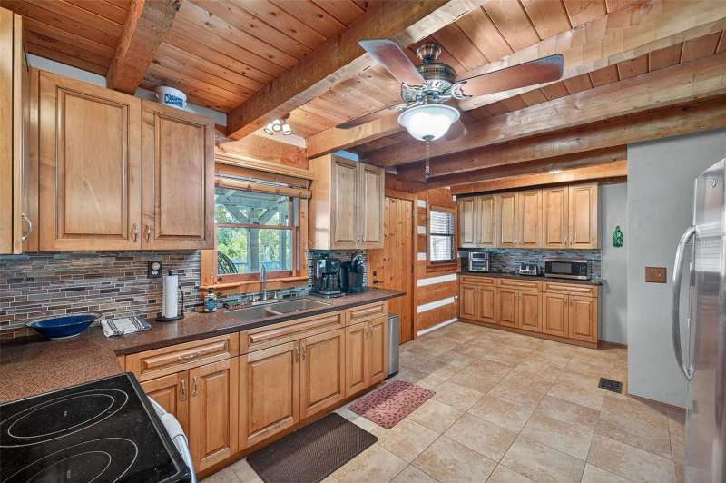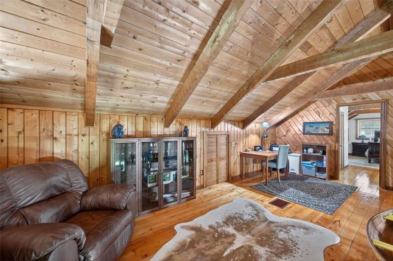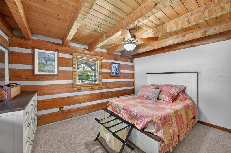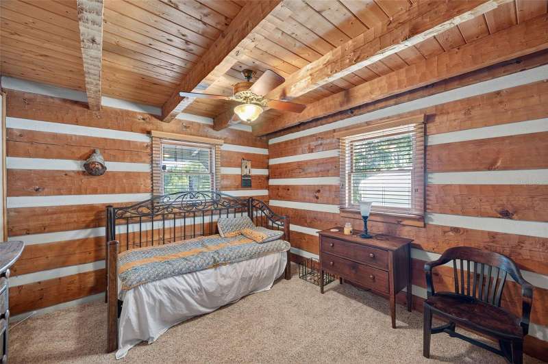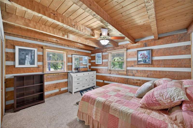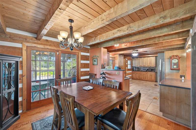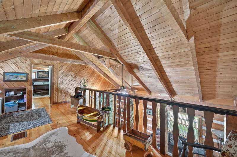 Custom Built 2,100 sq. ft. hickory log cabin that feels like you're in the Grand Tetons ! Welcome home to this unique lakefront 2 acres fenced MOL. You are greeted by the open living and dining area that includes a working large stone fireplace, vaulted ceilings with custom post and beam construction. Wood floors, a large custom kitchen with newer stainless high end appliances, and granite countertops, through french doors to the huge rear screened porch leading directly out to the lake. Downstairs includes 2 nice size bedrooms with tons of closet space and a large full-size custom bathroom. The magnificent staircase leads to a open loft area that overlooks the living room below. A Large master bedroom including an en suite with high ceilings and exposed beams. Tons of storage throughout the house. You will enjoy the serenity of the peaceful country suroundings while sitting in the oversized deck and porch areas. Also included is a stand alone garage / shop area, and a stand alone shed. Please note that the A/C and roof, including drainfields are less than 5 years old, as well as the stainless steel well pump. Custom window treatments and all furnishings stay. Less than a 10 minute drive to all major shopping. This is amust see !!