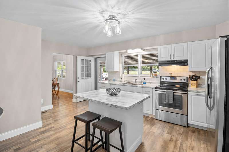 Welcome home to this charming Craftsman-style brick home currently zoned residential or commercial in the heart of London. Designed for comfort and convenience, this single-level residence features an updated kitchen, fresh neutral paint colors, stylish lighting and no carpet throughout. A beautiful shiplap feature wall adds warmth and character to the living room. Enjoy the spacious laundry and storage room for more flexibility. The bonus room is ideal are for a home office or could be easily converted to a third bedroom. Outside the oversized carport and two driveways make parking and entertaining simple. Nestled on a level lot with privacy, you'll enjoy the large fireplace or relax on the private back patio. With low maintenance updates including a durable metal roof, and newer heat pump, this inviting home is both welcoming and accessible, perfect for easy living.