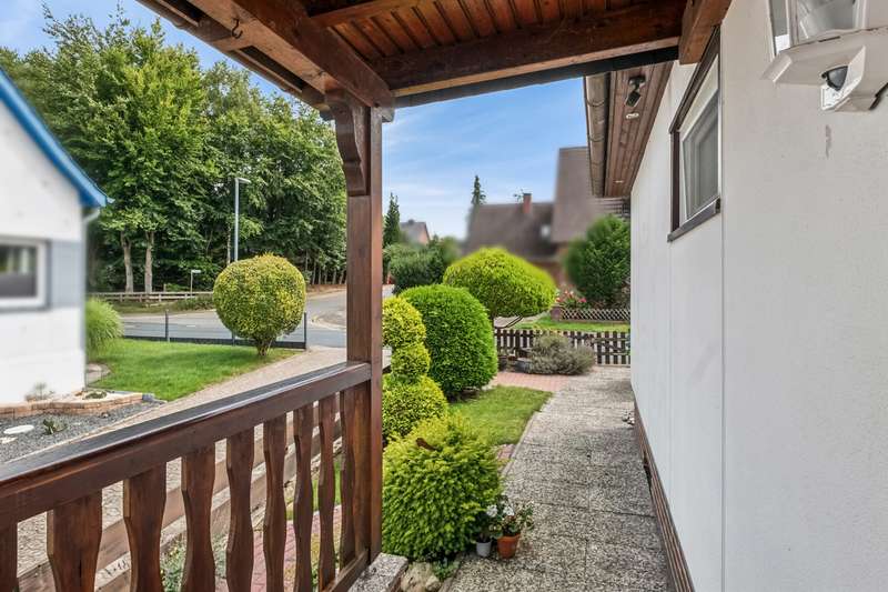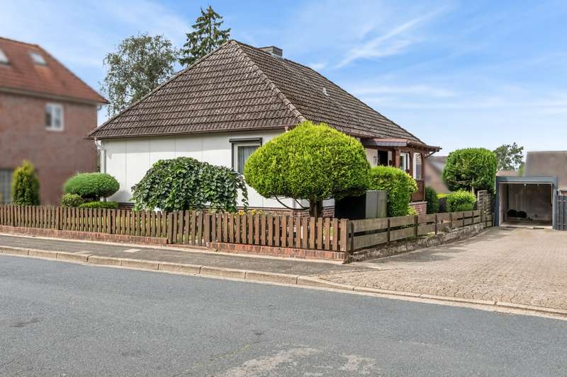Cozy detached house in Schneverdingen - central 504 m² plot with lots of sunlight This detached house offers an ideal combination of a central location, well-kept garden and versatile usage options. Continuously modernized, it now presents itself as an inviting home with a pleasant living atmosphere. The approximately 504 m² plot is located in a quiet residential area of Schneverdingen. Living area First floor approx. 88 m²: Bright, friendly rooms with direct access from the living room to the covered terrace - ideal for relaxing hours outdoors. The living room has been enlarged by opening up an adjoining room, creating an airy living and dining ambience. The kitchen offers enough space for a cozy dining area. A modern bathroom and two bedrooms complete this level. Basement approx. 26 m²: Separate bedroom with large window, en-suite shower room and access to the garden - perfect for guests, an adult child or as a home office. Further practical storage rooms in the basement create additional storage space. The attic is accessible via a fixed staircase, is insulated and can be converted - a reserve for future living ideas. Features and modernizations Built in 1971 as an OKAL prefabricated house Garage extension from 1974 Oil central heating (1991) Special features Covered terrace with garden access Well-kept, sunny plot with several cozy sitting areas Flexible use thanks to additional living space in the basement and convertible attic This detached house combines cozy living comfort, a modern bathroom, a lovingly landscaped garden and the possibility of flexibly designing the available space - ideal for anyone looking for central living in Schneverdingen with plenty of light and space.
