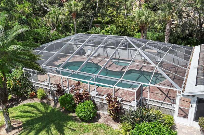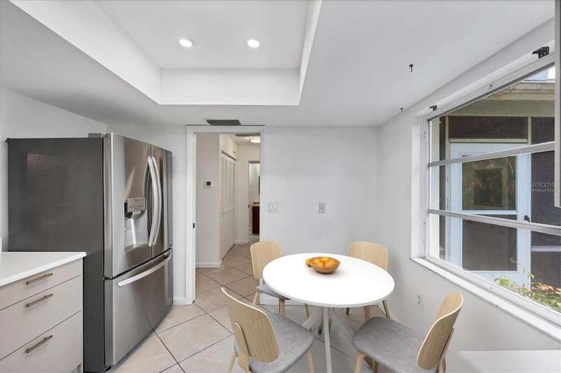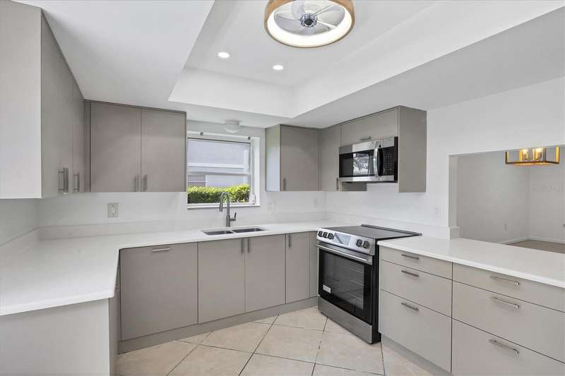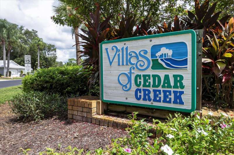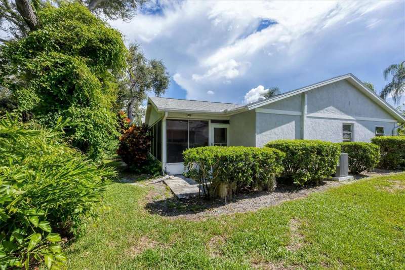 Effortless Florida living awaits in The Villas of Cedar Creek. Unbeatable location just off University Parkway. This spacious 2-bedroom, 2-bath villa with a 2-car garage offers maintenance-free comfort and a refreshed interior. NEW kitchen just completed NEW bedroom carpet and freshly painted interior, plus ceramic tile flooring in the main living areas. NEW ROOF (August 2023), NEW A/C (2024), NEW WATER HEATER (2024) provide peace of mind. The spacious, open great room features a vaulted ceiling and flows seamlessly into the enclosed Florida sunroom, offering additional living space. Overlooking lush, natural landscape provides serene views. The updated kitchen includes modern cabinetry, stainless steel appliances, a cozy dining nook with front yard views, and a convenient pass-through window to the dining room. The primary suite offers private access to the Florida sunroom, a walk-in closet with built-ins, and an ensuite bath with walk-in shower and granite counters. The second bedroom is conveniently located near a stylish guest bath. The two-car garage provides in-home laundry with LG washer and dryer, built-in storage and a utility sink. Located in a quiet, pet-friendly community with a screen-enclosed heated pool and spa, clubhouse, and included lawn care, irrigation, and exterior pest control. Just minutes to UTC, I-75, shopping, dining, hospitals, and world-class beaches. Perfect for year-round living, a seasonal retreat, or rental income.