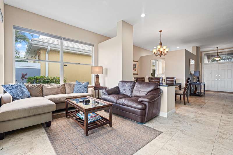 Stunning Views! Enjoy South Florida living in the sought-after gated community of Bear Island. This beautifully maintained single-story home sits on the golf course offering sweeping golf and lake views with beautiful sunrises. From the moment you enter, you're welcomed by an abundance of natural light, neutral tones, and spacious open-concept living and dining areas. Expansive Impact sliding doors seamlessly connect the indoor space to a serene backyard and patio, ideal for relaxing or entertaining against a stunning golf course backdrop. Live in one of Palm Beach's premier golf course communities without the burden of a mandatory membership fee. Bear Island is a 24-hour manned gated community, located within Village Lakes POA. This offers 3 separate parks with pools, tennis and more!
