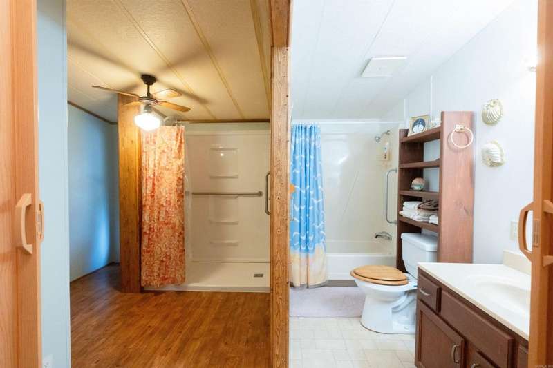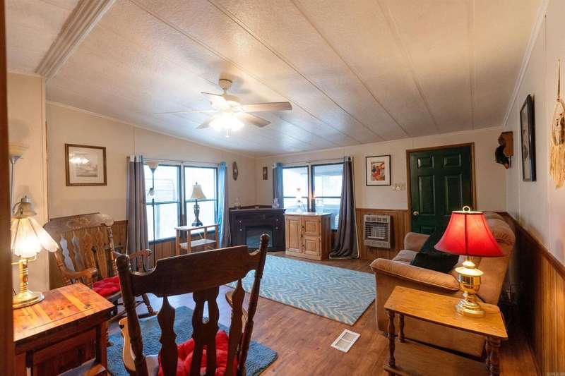 Beautiful Land with WELL-KEPT 2br 2 1/2 bath mobile home. Addition that could be used as a family room, game room, media room, or an additional bedroom. Lots of closet space. Fresh paint, nice solid oak cabinets. Sunroom with tranquil view. Pex plumbing throughout home. Metal Roof. Handicap accessible with wheelchair ramps. Storm Shelter. Plenty of space for animals. Great place for a weekend getaway or a little Hobby Farm. Small stocked pond. Plenty of Large, beautiful trees with some fruit trees. Old home located on the property is watertight. Great Garage/ Storage space with updated Electrical repair on both Garage and old home. Garage has new paint. Multiple Storage buildings. Old well and well house. Selling Furnished. 3430 /3432 Heber Springs Road N. Tumbling Shoals Ar. 2.40 acres M/L