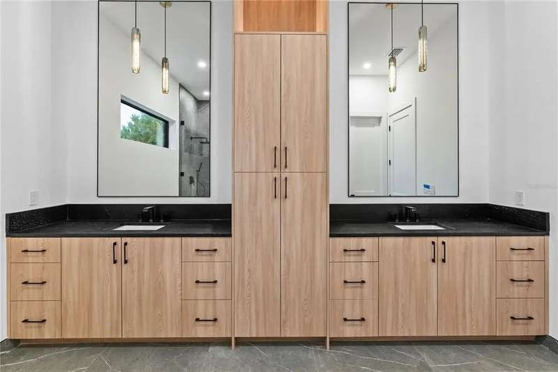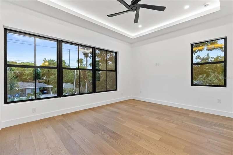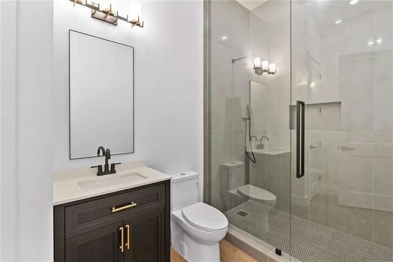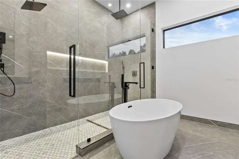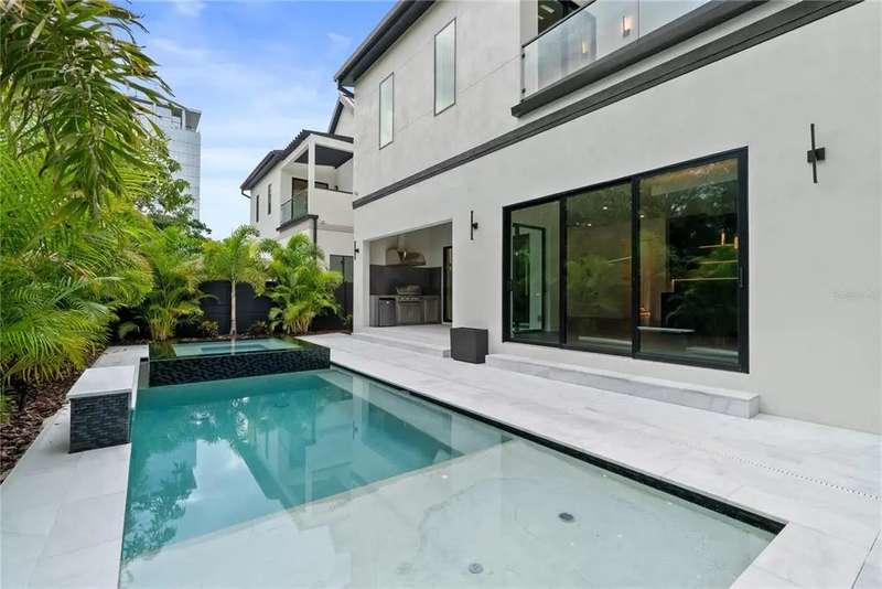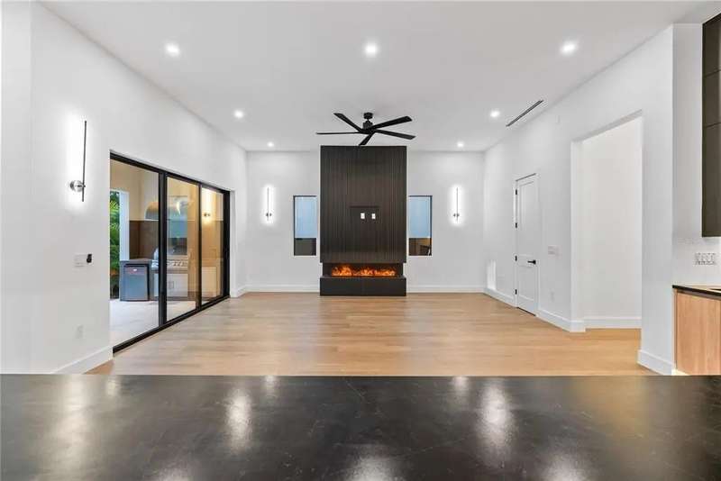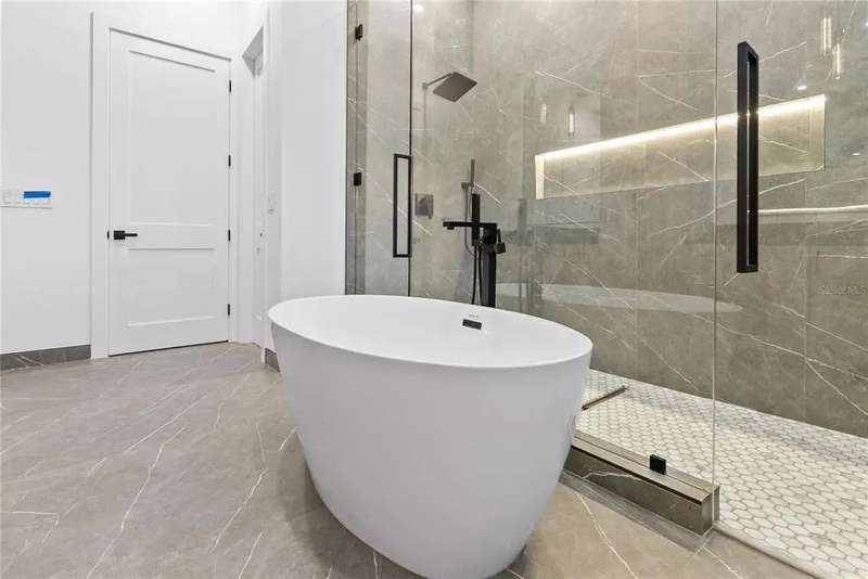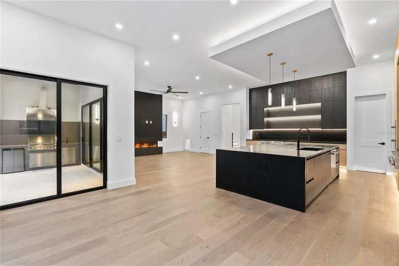 Sophisticated New Construction in Midtown This brand new 5-bedroom, 5.5-bath home spans 3,420 square feet of elevated living, expertly crafted with luxury finishes and thoughtful functionality throughout — and best of all, not located in a flood zone. Inside, smooth Level 4 walls and engineered oak hardwood floors create a refined, minimalist backdrop. The open-concept great room features a statement fireplace, flanked by designer sconces and bathed in natural light. The chef’s kitchen stuns with fluted black paneling on the island, custom white and black oak cabinetry, and striking pendant lighting — all seamlessly connected to the bar and pantry for effortless entertaining. Retreat upstairs to the second-floor primary suite, where spa-like serenity awaits with a freestanding tub, dual rain showerheads, a chandelier over the tub, and a white oak vanity layout accented by bold black plumbing fixtures. Every detail has been considered — from a stylish double laundry room to curated lighting throughout, including a modern stairwell chandelier, gold bathroom fixtures, and layered sconce lighting in the halls. The home also offers both balcony and patio access, blurring indoor-outdoor lines. Step outside to your own private oasis: a sleek pool and spa surrounded by lush landscaping and thoughtful outdoor lighting. Whether you're lounging with family or hosting guests, this home delivers on lifestyle and luxury.