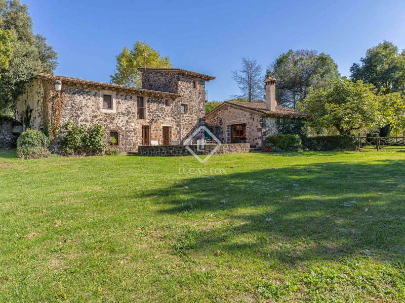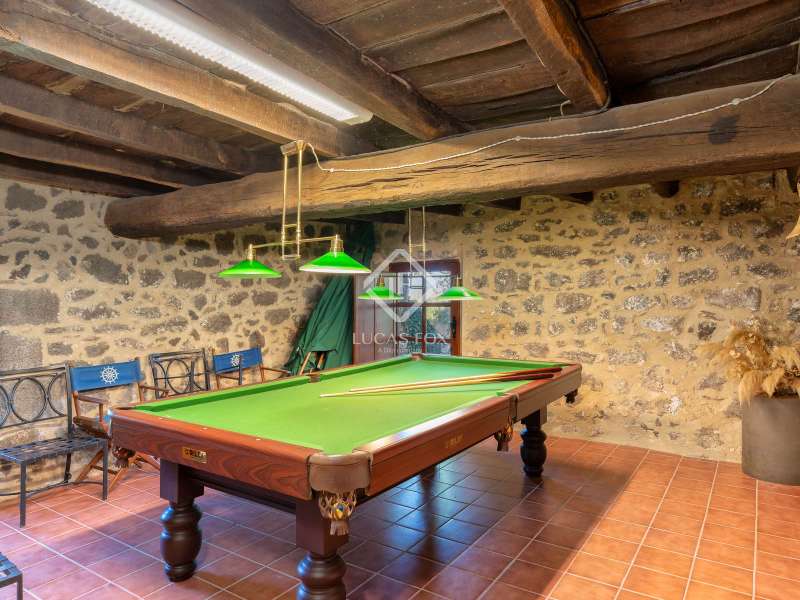Located in the heart of La Garrotxa, this estate in Batet de la Serra offers a rare combination of rural charm, comfort, and panoramic views of the Pyrenees. Set on a gentle hill surrounded by unspoiled nature, it provides privacy, space, and a strong sense of place. Built from volcanic stone, the house has a timeless, solid presence. Large windows fill the interiors with natural light and frame the surrounding landscape. The spacious living room, with its fireplace, creates a welcoming atmosphere during cooler months. Two terraces extend the living space outdoors, ideal for dining, relaxing, or enjoying sunsets. An outdoor kitchen adds convenience for gatherings and everyday living. The main kitchen is fully equipped and directly connected to the terrace for easy indoor-outdoor flow. The ground floor includes an entrance hall, guest bathroom, laundry area, billiard room, and hallway leading to the bedrooms. Upstairs, a cosy sitting area with a wood-burning stove connects to bright bedrooms and two bathrooms. The attic features an additional bedroom under the eaves, private and full of character. The property also includes a newly built and fully legalized apartment, suitable for guests or independent living, along with a separate staff residence. The grounds, covering over one hectare, include a swimming pool with views of the mountains, a three-car garage, and complete utilities: mains water, electricity, and diesel heating. This is a home designed for those who value space, quality, and a close connection to nature, a place to live comfortably and quietly, surrounded by the beauty of La Garrotxa. Please contact us for further information.