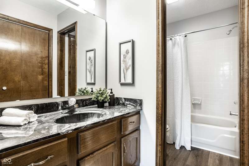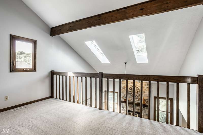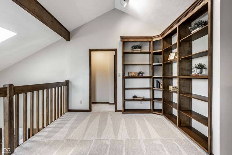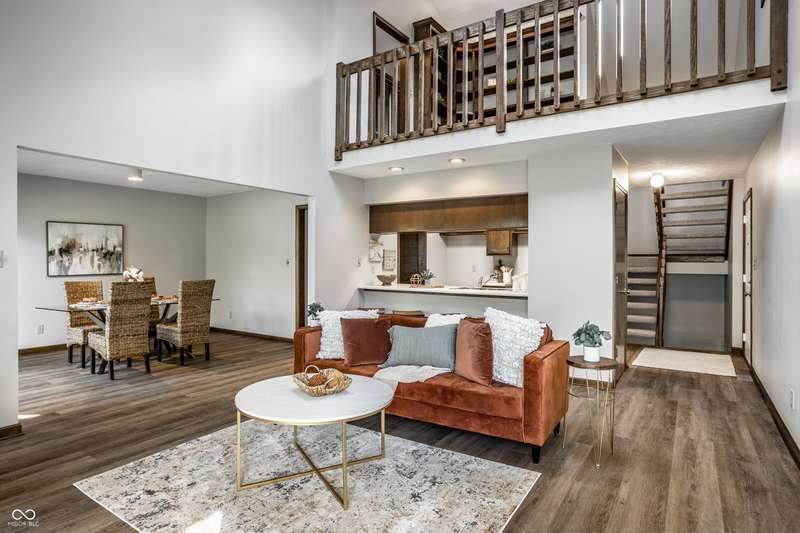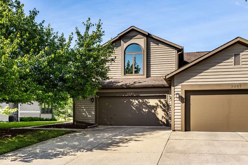 Welcome to 2247 Frisco Place! Step into an exquisite home that captivates with a large great room, featuring a stunning floor-to-ceiling stone gas log fireplace and a cathedral ceiling adorned with two skylights. The main level also includes a formal dining room, a galley kitchen with a breakfast bar, and a convenient half bath, complemented by a wood deck perfect for evening relaxation. On the second floor, you'll find a spacious loft complete with built-in shelves, a laundry closet, and a primary bedroom boasting a full bath and a walk-in closet. The second bedroom also features its own full bath, providing ample comfort for family and guests. The walk-out basement offers an expansive unfinished space ready for your customization, allowing you to create the perfect area tailored to your needs. Recent updates enhance this home's appeal, including fresh paint and flooring throughout. A new radon system, mold remediation around the sump pit, and a tuned-up HVAC system ensure peace of mind. Additional improvements consist of five new windows, a new pressure-reducing valve, a new water main valve, and updated components on the water heater, along with foundational carbon fiber strapping in the basement. Notably, the mechanicals are located in the basement rather than the garage, providing more garage space. The garage also includes a rare storage closet and lastly this unit features one of the few true walkout basements available in the neighborhood. Located conveniently near various amenities, this home offers easy access to I-465, Carmel, Broad Ripple, Keystone at the Crossing, and Nora, making it an ideal choice for your next move. Estate Sale. Seller will consider an appliance allowance with all reasonable offers.