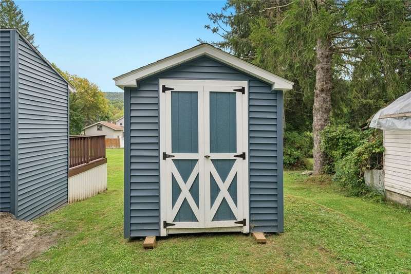 Welcome to quiet Chapel Street in the Village of Almond! This charming 3-bedroom, 1-bath home combines the warmth and character of an older home with the peace of mind that comes from so many modern updates. Step inside and you'll find a beautifully renovated full bathroom, new sheetrock ceilings, and upgraded electric panel. Heating options include cozy gas stoves as well as electric baseboards, giving you flexibility year-round.Outside, enjoy the benefits of brand-new exterior vinyl siding with shutters, a fresh roof, and inviting front porch. The spacious back deck overlooks a large yard with gorgeous fall foliage views of the rolling hills of Allegany?perfect for both relaxation and entertaining. Major investments have already been made for you, including a NEW septic system and hot water tank (2023) plus a brand-new, never-used shed for extra storage.If you're looking for small-town living with move-in ready updates and stunning views, this home is a must-see!