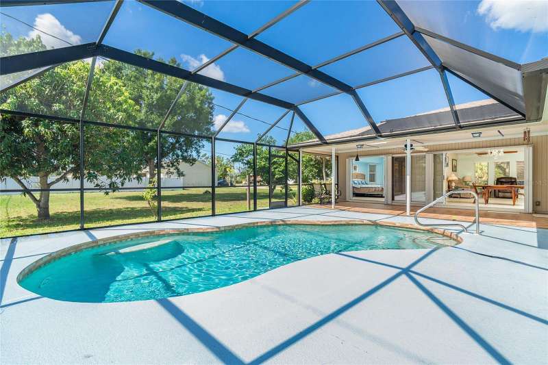Under contract-accepting backup offers. One or more photo(s) has been virtually staged. Welcome to 6206 Marcum St in Englewood! This 2BR/2BA home sits on a spacious double lot. Car enthusiasts and hobbyists will love the 3-car attached garage and oversized driveway, offering plenty of room for vehicles or a boat. Relax or entertain in the private backyard oasis featuring a sparkling inground pool with a screened pool cage, a covered back deck, and mature fruit trees that add both beauty and functionality to your outdoor space. A whole house generator ensures comfort and peace of mind year-round. Accordion hurricane shutters provide added security, while the enclosed front entry adds extra living space. Located minutes from beaches, golf, and shopping. No HOA! Whether you're looking for a full-time residence, winter escape, or investment property, this home checks all the boxes.