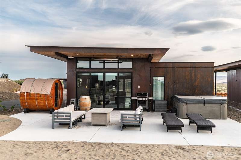 Experience luxury living at The Lakes at the Gorge—this stunning 2 bed, 2 bath home sits within the Cave B Winery & Vineyard community, just steps from the Gorge Amphitheater, Sagecliffe Resort & Spa, and Cave B Winery. Enjoy panoramic views, 10-ft ceilings, heated floors, and fully custom finishes throughout. Expanded patios with grapevines, hot tub, barrel sauna, fire pits, outdoor heaters, and a sandy play area by the private lake create the perfect retreat. Sleeps 10 with added sleeping spaces and includes major furnishings. Tesla EV charger installed. Minutes to Frenchman Coulee, rock climbing, golf, and hiking. A true getaway with resort-style amenities—this home has it all