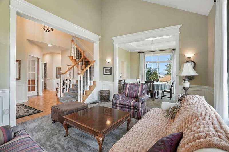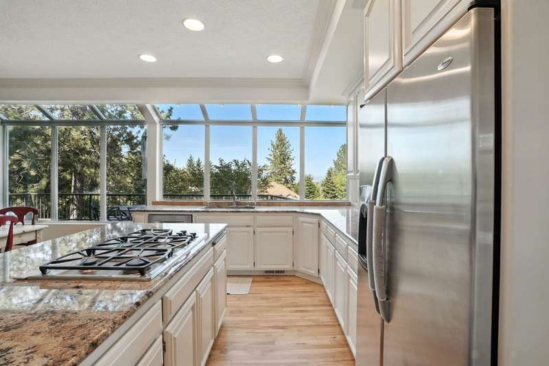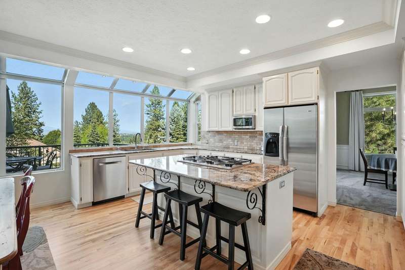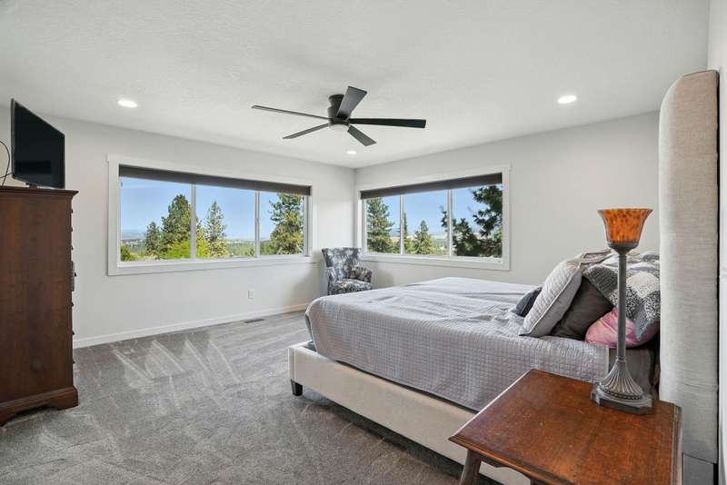 Welcome to this spacious 5 bedroom, 4 bath home perched at the top of Bella Vista with sweeping Spokane Valley views. Offering the perfect mix of elegance and comfort, this home features a luxurious primary suite, warm gas fireplaces, and an open layout designed for both everyday living and entertaining. The finished basement includes a kitchenette and surround sound—ideal for movie nights, game days, or hosting guests. Thoughtful updates like newer carpet and refinished hardwood floors add to the home’s charm and style. Step outside to a large backyard and enjoy the new deck, perfect for summer barbecues, gardening, or simply relaxing. This home provides space, comfort, and lifestyle in one of the Valley’s most sought after neighborhoods.