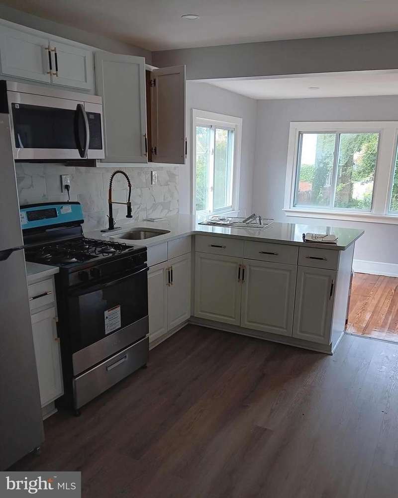 Check this fact most row homes are about 1152 SFt. This is 1110 Sq Ft. Private entrance to Stairs leading to a beautiful 2nd floor Apartment. Recently Renovated. You will occupy this well done 1110 Sq Ft Apartment. Living Room at top of stairs. Kitchen/Dinette combo with well appointed kitchen. There is no laundry area provided. Some modern up to date appliances others like new, beautiful countertops and trendy plumbing Fixtures. 100 Amp Electrical system and separate thermostat . Full 40 gallon hot water heater. Recessed lighting plus. Hardwood floors and tile. Dinette windowed with abundant light to provide a cheery atmospherr. 2 large bedrooms with large closets and access to its own utility panel. Ceilings throughout to 7 foot. Pantry adds storage space for added space. Walk in closets in bedrooms adds personal storage space. This is 1110 SF of pure space. A must see. Water included in Rent. We encourage the use of our website rental application button to submit your application. Other Realtors welcome to site. Credit Record of lease/rental payments more valuable then credit score however looking for acceptable credit. No smoking inside -- plenty of space to smoke outside. Close to shopping and trans to downtown philly. A fine place to call home. See it today. Property Go and show and is on lockbox . Schedule via showing time. REQUIRED: 1st, Last 1 mos security = $5400.00 @ signing of Lease.