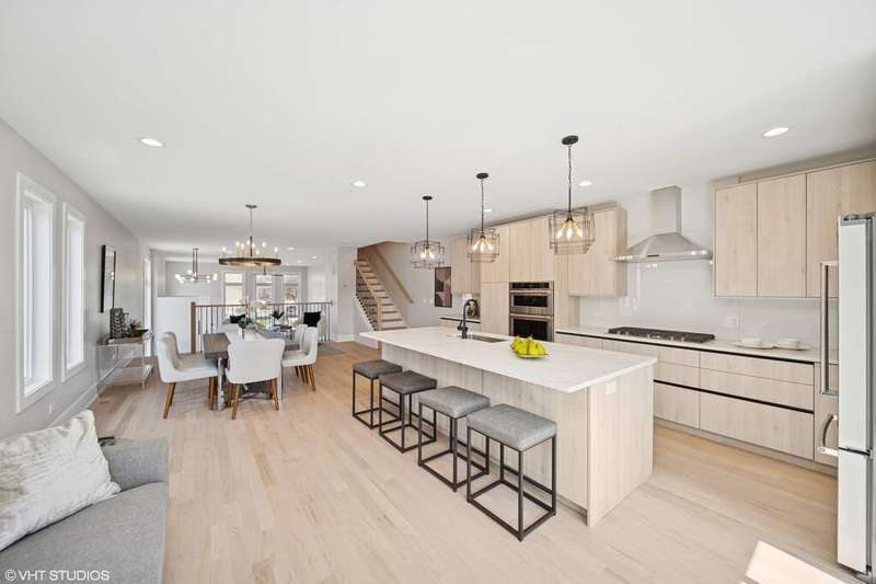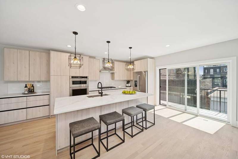 Experience elevated city living in Bronzeville. ArtisanGalanta is a limited collection of six beautifully designed three-story row homes perfectly blending refined comfort, contemporary elegance, and exceptional functionality. These striking residences feature impressive 13-foot ceilings, dramatic 10-foot windows, and open-concept layouts that maximize natural light and create a seamless flow. The dramatic two-story living room, anchored by a sleek fireplace, is a stunning centerpiece ideal for relaxation and entertaining. The chef-inspired kitchen is truly the heart of the home, showcasing a large 9-foot island with seating for four, custom 42" flat-panel cabinetry, quartz countertops, designer tile, and premium stainless-steel appliances, including a double oven, built-in microwave, French door refrigerator, and wine fridge. Adjacent to the great room, a private balcony offers an ideal setting for enjoying your morning coffee or dining al fresco. Upstairs, the luxurious primary suite is designed as a true retreat, offering ample space for a king-size bed and a sitting area. The spa-inspired ensuite bath features a soaking tub within a glass-enclosed wet room and a double vanity. Two additional well-sized bedrooms, each comfortably fitting a queen bed, and a full bath complete the upper level. Throughout each home, you'll appreciate the harmonious blend of modern luxury, timeless design, and thoughtful details.ArtisanGalanta's ideal location in the vibrant Bronzeville neighborhood offers convenient access to the Green Line, CTA buses along Cottage Grove Avenue and King Drive, and major thoroughfares like Lake Shore Drive and I-90/94. A short walk will take you to Chicago's beautiful lakefront parks, beaches, and numerous activities. You'll also enjoy the convenience of nearby shopping options, including Mariano's, Walgreens, and Jewel, with Whole Foods and Trader Joe's just a short bike ride or drive away. The neighborhood also boasts local culinary gems such as Two Fish, Ain't She Sweet Cafe, Truth Italian Food, and Simply Soups. These exceptional homes are currently under construction. Call today to schedule a private tour and explore the exciting opportunity to personalize your new home.