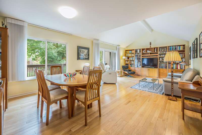 Attractive condo loaded with updates & improvements in popular Northbury community designed by Hobbs & Black to create maximum green space with low density per acre. It's like living in a park - there's no other community like it! Tucked into a corner with beautiful verdant views, this charming home is delightful. Sunlit floor plan offers an open spacious Dining and Living Room with newer hardwood floors and vaulted ceiling. Easy access to a large private deck with electric awning and great nature views. Comfortable updated Chef's Kitchen has refurbished hardwood cabinets with new hardware, granite countertops with travertine tile backsplash, stainless steel appliances, ceramic tile floor, and large pantry with inviting eating area or room for a large island. The main floor Primary Bedroom has a new ''wood'' floor, walk-in closet and adjoining updated Bath. Newer bath has been remodeled with a Euro walk-in shower, beautiful tile wainscoting with travertine accents, vanity with granite countertop, bidet toilet, and tile floor. 2nd floor offers 2 additional roomy Bedrooms, walk-in closet, and lovely updated Bath with tile wainscoting. The terrific walkout Lower Level is delightful and offers a spacious Family Room with cozy gas fireplace and new triple doors to patio. The 4th Bedroom with closet or Study, and 3rd Full Bath are nice for visiting guests or quiet study. The Laundry Room has new raised front loader washer & dryer with drawers and built-in folding space with cabinets. Multiple improvements include all new Andersen windows and door walls, new doors and hardware on main floor, hardwood flooring, baths and kitchen remodel, insulation, newer furnace & A/C, thermostat and water heater, paint and more! This is a perfect remodeled condo that is tastefully done and more than move in ready!