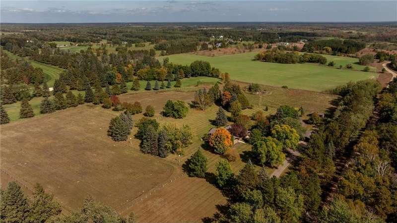 Opportunity abounds to own this picturesque family legacy property adjoining Whitetail Run Golf Course on 11.9 beautiful acres! This custom-built one-of-a-kind home features over 5,000 sq. feet of living space and has a nostalgia charm throughout! Upon entering, you will be greeted with the oversized great room with a beautiful vaulted ceiling, 2 massive stone fireplaces on the main level, with one being a double-sided fireplace, well-appointed kitchen set up with entertaining in mind, hardwood floors, 2 laundry rooms, upper-level primary suite with a private balcony overlooking the golf course for the perfect spot to sit back and relax. Stepping into the lower level will find a large family room, rec room with a wet bar along with a bonus play nook for the kids! 2-car attached and heated garage, 36x24 detached garage for additional storage or workshop area, small stable and property is surrounded by a charming picket fence. New roof in 2024 and a new septic has just been installed. Opportunity abounds in this beautiful legacy property!