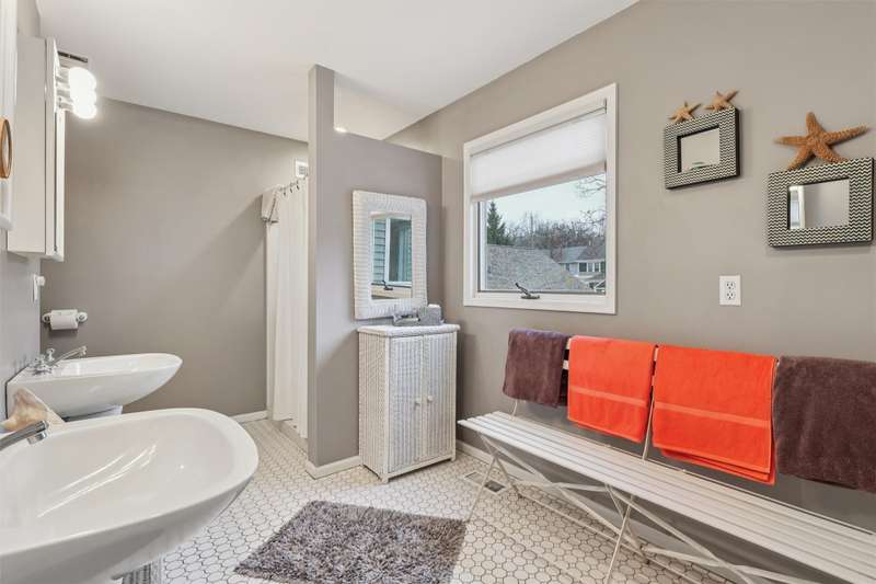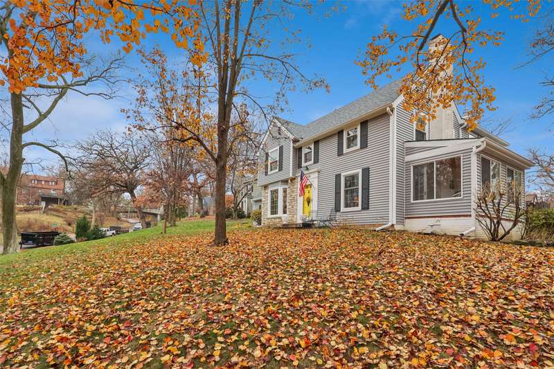 This charming South of Grand residence offers an array of features unusual for historic homes. The laundry has been conveniently relocated to the second floor, while the two-car attached garage provides easy access to a mudroom, perfect for transitioning from the outdoors. The open concept kitchen and family room feature a stunning double vaulted ceiling, enhancing the spaciousness. Beautiful hardwood floors grace most of the home. The finished lower level showcases a cozy family room adorned with vintage knotty pine, a built-in bar, and a fireplace. Recent updates in 2022 include a new roof, gutters, siding, furnace, and garage doors. Abundant natural light fills the house, and its placement on the lot ensures a private backyard oasis, complete with a saltwater pool visible from every room at the back of the home. Oversized windows provide year-round views of the pool and outdoor living spaces, creating a seamless connection between indoor and outdoor areas. 3209 Saint Johns Road sits on a quiet cul-de-sac tucked into the neighborhood. Come experience a special opportunity.