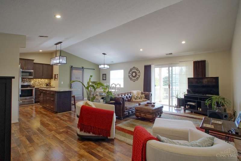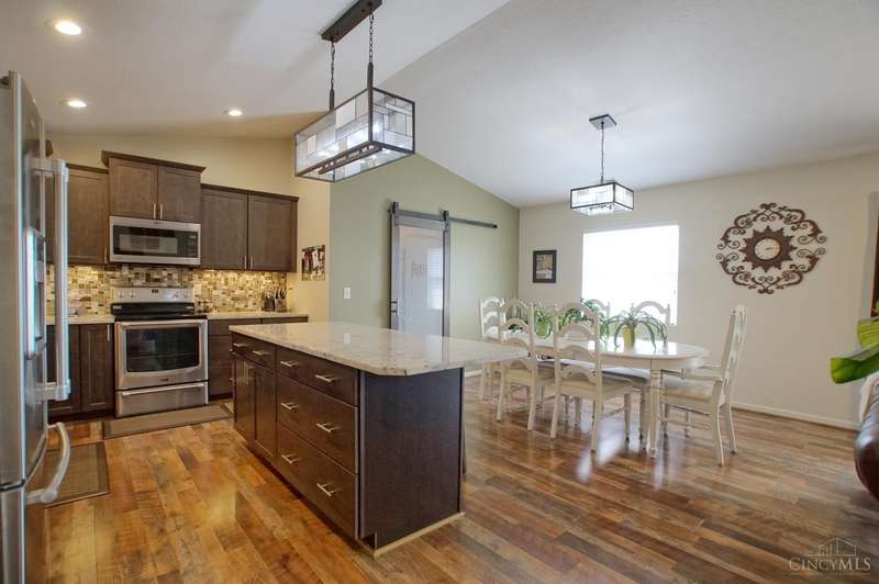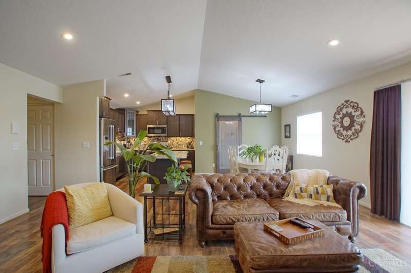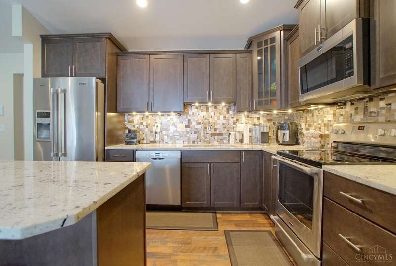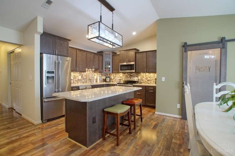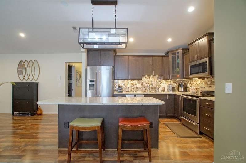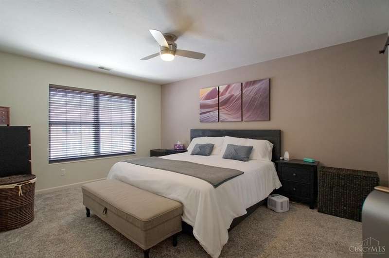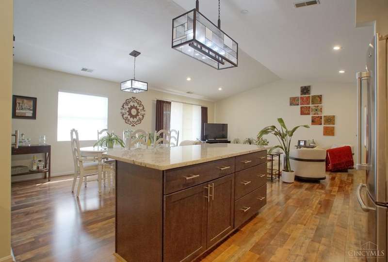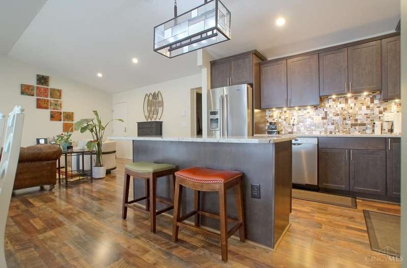 Picture Perfect Condo that is updated throughout! New Open Floor Plan in Main Living Area as they removed kitchen walls to Dining Room & Great Room! New Designer Custom Kitchen w/newly added Walk-in Pantry! New kitchen offers Custom Staggered Cabinets, Hardware, Granite Countertops, Island w/bar seating, SS Appliances, lighting & backsplash! So much attention paid to every detail of the remodel! New flooring throughout including Carpet in Primary bedroom and LVP throughout rest of condo! New features in primary bathroom include dbl vanity w/ custom cabinets, quartz tops, sink bowls & faucets, hardware, mirrors, light fixtures, custom tile shower w/bench seat, tile flooring, linen closet & walk-in closet w/Shelving organizer as well as pocket door & barn door to Primary bedroom! The 2nd full bath also offers all new flooring, custom vanity w/solid surface top, sink, faucet, soaking tub & shower surround! New blinds! Freshly Painted! New Ceiling fans w/remotes! Detached Garage! Trex Deck