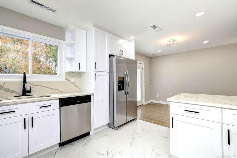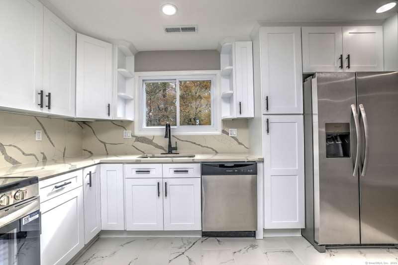 Welcome to 12 Linda Street, West Haven! This fully renovated single-family home blends modern comfort with timeless charm. Located on a peaceful cul-de-sac, this cozy 3-bedroom, 2.5-bath home is perfect for entertaining or everyday living. Step inside to find a bright and airy layout featuring a spacious living room, a dedicated dining area, and a brand-new all-white kitchen complete with stainless steel appliances, quartz countertops, and custom cabinetry. Beautiful hardwood floors flow throughout, complemented by recessed lighting and central air for year-round comfort. Upstairs, the home offers three generous bedrooms and a stylishly updated full bath, providing plenty of space for family or guests. Enjoy outdoor living in your private, perfect for summer barbecues, quiet mornings, or hosting friends on the patio. A 1-car garage and fresh landscaping complete this move-in ready home. Tucked away on a quiet cul-de-sac yet just minutes from beaches, shopping, dining, and major hig
