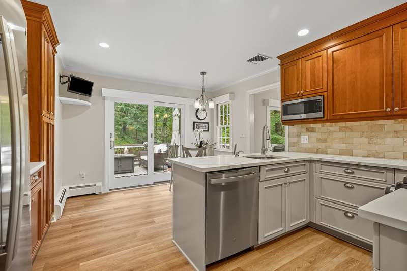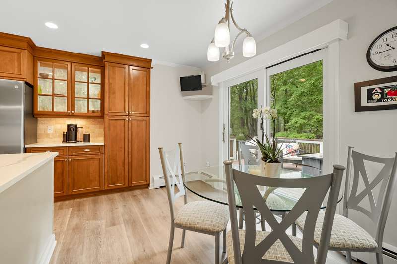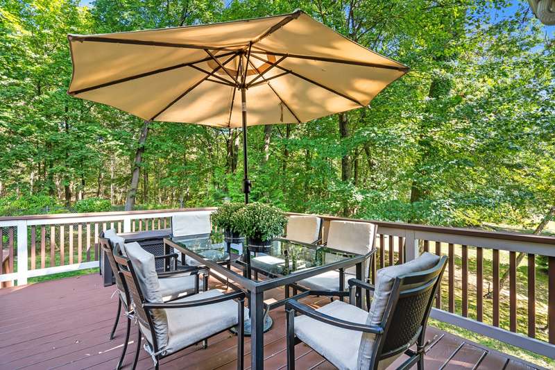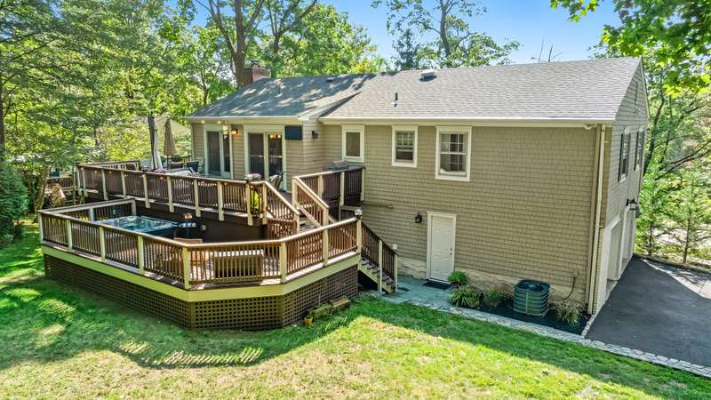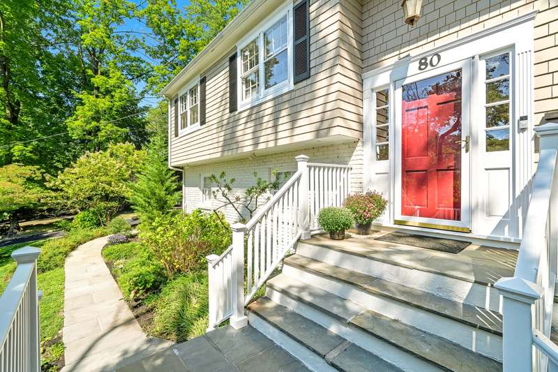 Set back and high above North Street on .38 ac, #80 is private & quiet. This Must-see location features an amazing OUTDOOR setting: 2-tiered deck overlooking Rye Nature Center creates a private sanctuary + addtl 3-Season living space. Covered lower patio & generous level backyard complete the outdoors. Step INSIDE to this MOVE-IN READY light-filled home. Open Floor Plan Lge LR opens to entertainment-size DR w/ glass doors to deck & wooded views. Kitchen w/ quartz countertops, new appliances, rich wood cabinetry & glass doors bringing nature inside. The KIT/DR combo offers great everyday family living & entertaining flow. Main Floor incl: Primary BR/ensuite Bath, Full BR, Queen BR, Double Vanity Hall Bath, Custom Closets throughout. Lower-Level living: Lge Fam Rm/Rec Rm w/fireplace, Doors to patio & backyard + 4thBR /Home Office/Playroom offers flexibility to fit all lifestyles. Completing this level: Full Bath, Laundry Rm, RARE 550+ 2Car GAR. Addtl highlights: NEW UPDATES throughout including brand new roof, Ring system, outdoor TV/Audio wiring, hot tub, gas grill hook-up, radiant-heated upper baths, storage galore. Centrally located, walk to all schools, downtown Rye, and equidistant to Rye & Harrison trains.
