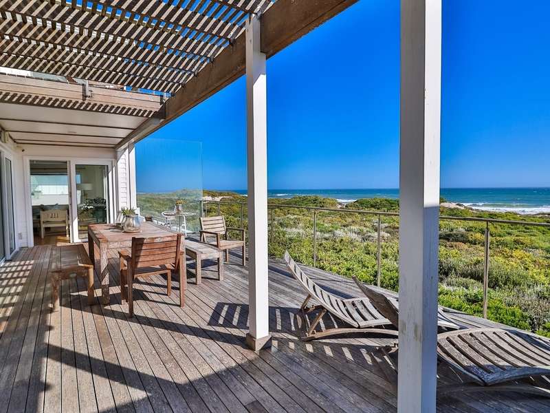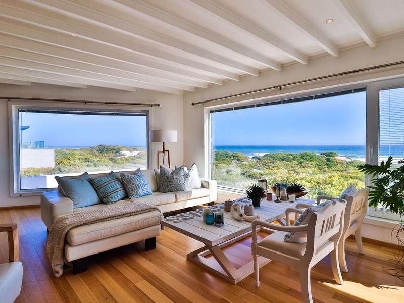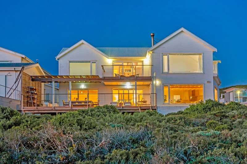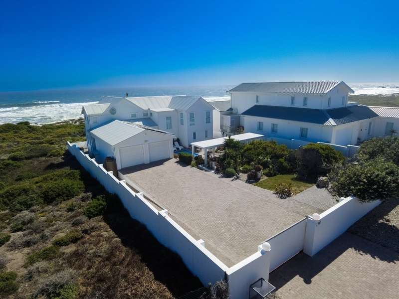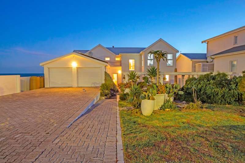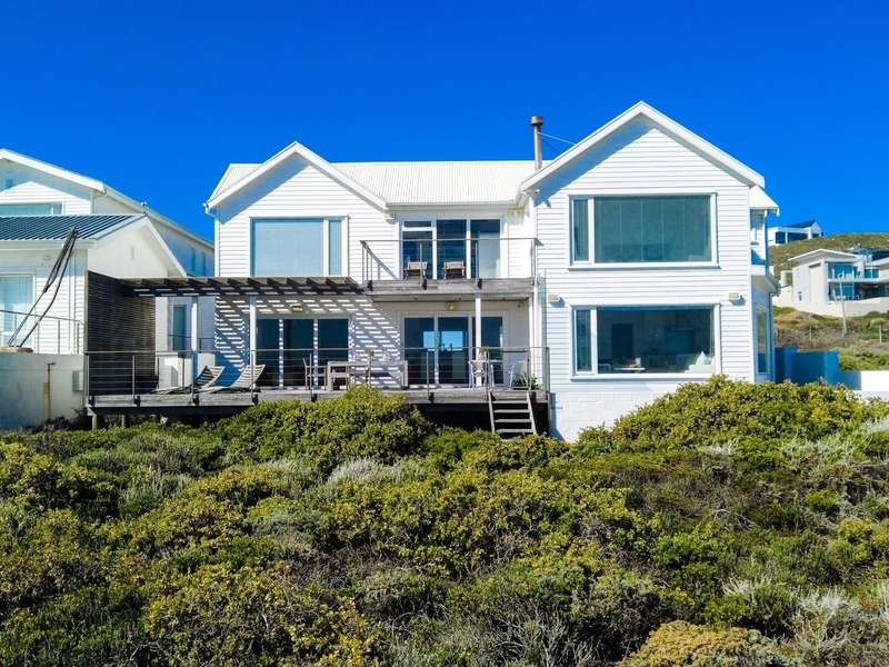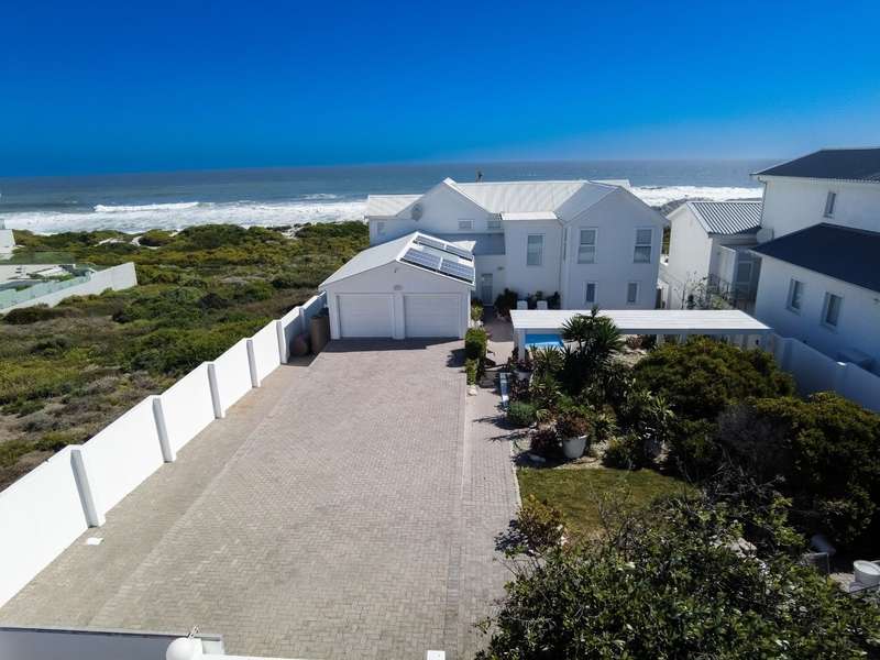 Enjoy the cool tranquillity of beachfront living, with unobstructed panoramic views across the Atlantic Ocean; all from the comfort of your very own “Beach House”. Spot the whales and dolphins just off Dassen Island and be enthralled by the rich variety of bird life as you head out for your morning beach walk with the dogs. Set on a prime beachfront stand (760sqm in extent), this architecturally designed timber-frame home (built by Rustic Homes) features the classic all-white cladding exterior, white Victorian roof-sheets and Balau decking. The interior boasts original hardwood flooring, down-lighting throughout, fitted white blinds, stainless steel curtain rails & balustrades and high-quality “Euro Style” aluminium windows and doors. The home has been distinctly designed with the ground floor encompassing all the open-plan entertainment/living spaces and the accommodation set on the first floor, to achieve maximum benefit from the beach and ocean views while also maintaining privacy. The ground floor includes a formal entrance hall leading onto an open-plan kitchen, lounge, dining room and TV/Family room (with bar area) all flowing out onto the sheltered entertainment deck with breath-taking beach and sea views. The kitchen features granite counter tops, a gas hob & stove and separate scullery & laundry with direct access to the double garage. The wood burning fireplace stove not only provides heating to the open plan living spaces on the ground level but also the main bedroom on the first floor. In addition, there is also a guest toilet and stairway with extra storage space underneath. The first floor encompasses four bedrooms and two bathrooms. The main bedroom suite offers full sea views (with access to the upper balcony) and includes a separate dresser with en-suite bathroom including a double basin, supersized shower and separate toilet. The second bedroom was originally built as a music room (with soundproof insulation) and it also boasts full sea views. It currently serves as a home office/study and has direct access to the upper balcony. The third bedroom, also sea facing, offers built-in cupboards and shares a full family bathroom with the fourth bedroom (also offering built-in cupboards) overlooking the courtyard garden. All the bedrooms feature the classic exposed lime-washed trusses and have been furnished in a classic beach house style. The private east facing courtyard garden and patio is a real bonus and provides an excellent outdoor space, especially for summer entertaining. A swimming pool was recently added to this area. Extras include, four water tanks and a solar power system (with up to 24-hour battery life). Viewing is strictly by appointment.