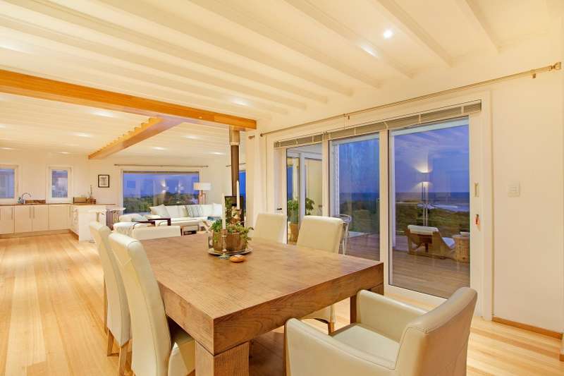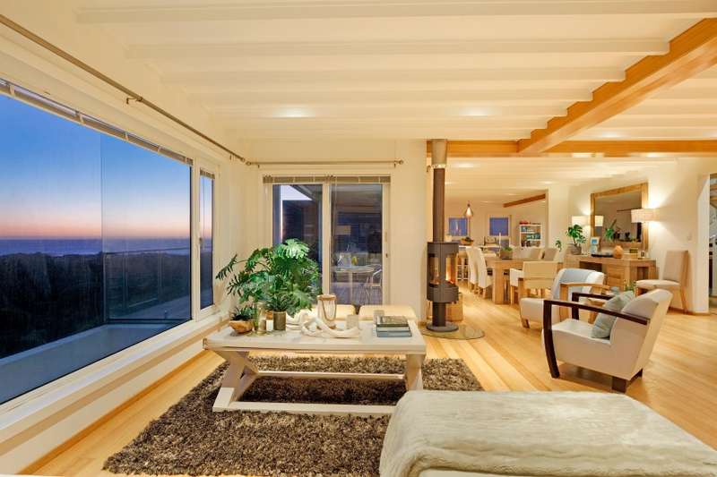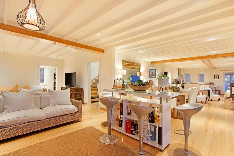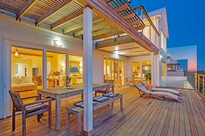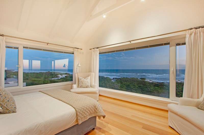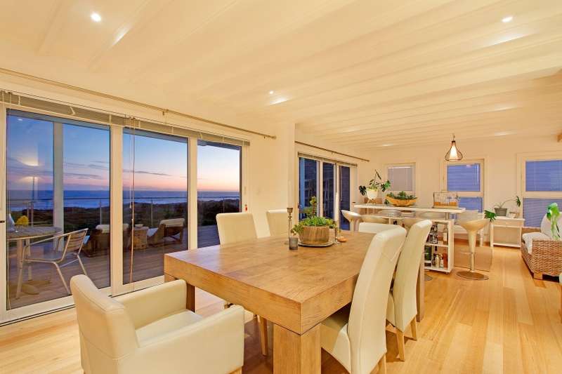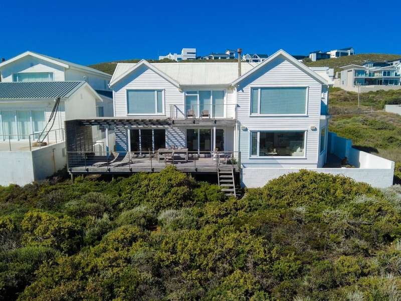 Enjoy the cool tranquillity of beachfront living, with unobstructed panoramic views across the Atlantic Ocean; all from the comfort of your very own “Beach House”. Spot the whales and dolphins just off Dassen Island and be enthralled by the rich variety of bird life as you head out for your morning beach walk with the dogs. Set on a prime beachfront stand (760sqm in extent), this architecturally designed timber-frame home (built by Rustic Homes) features the classic all-white cladding exterior, white Victorian roof-sheets and Balau decking. The interior boasts original hardwood flooring, down-lighting throughout, fitted white blinds, stainless steel curtain rails & balustrades and high-quality “Euro Style” aluminium windows and doors. The home has been distinctly designed with the ground floor encompassing all the open-plan entertainment/living spaces and the accommodation set on the first floor, to achieve maximum benefit from the beach and ocean views while also maintaining privacy. The ground floor includes a formal entrance hall leading onto an open-plan kitchen, lounge, dining room and TV/Family room (with bar area) all flowing out onto the sheltered entertainment deck with breath-taking beach and sea views. The kitchen features granite counter tops, a gas hob & stove and separate scullery & laundry with direct access to the double garage. The wood burning fireplace stove not only provides heating to the open plan living spaces on the ground level but also the main bedroom on the first floor. In addition, there is also a guest toilet and stairway with extra storage space underneath. The first floor encompasses four bedrooms and two bathrooms. The main bedroom suite offers full sea views (with access to the upper balcony) and includes a separate dresser with en-suite bathroom including a double basin, supersized shower and separate toilet. The second bedroom was originally built as a music room (with soundproof insulation) and it also boasts full sea views. It currently serves as a home office/study and has direct access to the upper balcony. The third bedroom, also sea facing, offers built-in cupboards and shares a full family bathroom with the fourth bedroom (also offering built-in cupboards) overlooking the courtyard garden. All the bedrooms feature the classic exposed lime-washed trusses and have been furnished in a classic beach house style. The private east facing courtyard garden and patio is a real bonus and provides an excellent outdoor space, especially for summer entertaining. A swimming pool was recently added to this area. Extras include, four water tanks and a solar power system (with up to 24-hour battery life). Viewing is strictly by appointment.