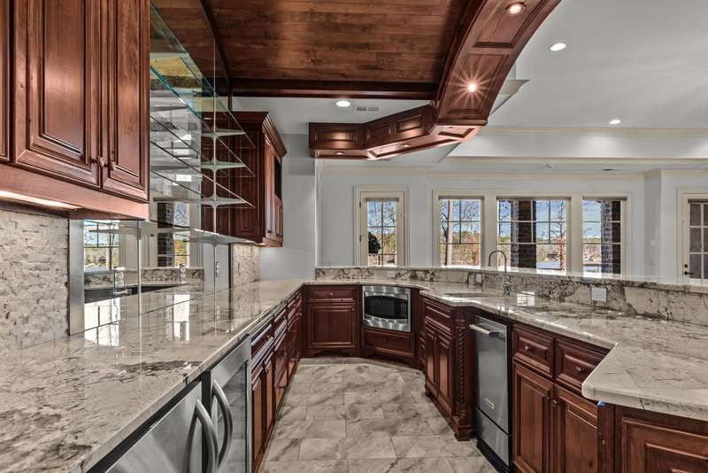 QUALITY, CRAFTSMANSHIP, VIEWS, LOCATION! This stunning custom lakefront estate at Sandy Ford in Reynolds Lake Oconee, designed for luxury and comfort, was crafted by reknowned builder Jim Joel and offers panoramic lake views and unparalleled location minutes from the Ritz and Lakeclub by boat. Every detail of this home reflects superior quality craftsmanship, from intricate trim work to masterfully designed stone accents. Barrel ceilings, wood beams, add touches of architectural elegance, enhancing the grandeur of the spaces. The great room immediately captivates with expansive windows showcasing the lake, fireplace, and a stylish wet bar, creating the perfect setting for entertaining. The formal dining area is ideal for gatherings, while the chef’s kitchen boasts a large island, high-end appliances, and custom cabinetry. A stunning keeping room with thoughtfully-curated finishes create an atmosphere of refined luxury with incredible lake views providing a peaceful retreat. Additional features on the main level include a private office space, spacious laundry room, grill deck and gorgeous half bath. Step outside to an expansive covered stone porch, where breathtaking lake views create the perfect space for relaxation.The primary suite is a private oasis with a custom ceiling and serene lake to wake up to every morning. Its spa-inspired bath features a soaking tub, oversized shower, and his-and-her closets, ensuring the ultimate retreat. Above the three-car garage is a spacious bonus room/guest suite with a full bath offers versatility for guests or extended stays. Descend to the terrace level via the grand spiral staircase or elevator, and you will be impressed with the spacious family room featuring a stunning bar with intricate details, a fireplace and temperature-controlled wine cellar. This seamlessly flows to the resort-style backyard where a pool, hot tub and expansive stone patios create an idyllic retreat. You will enjoy lounging by the outdoor fireplace, unwind by the serene pond, or take a boat ride from your private dock. Whether it's a sunset cruise, a day of lake recreation with children or grandkids, or a short boat ride to the Ritz or Lake Club for lunch, this home offers unmatched access to Lake Oconee's best experiences. Three spacious guest suites, each with a private bath, ensure comfort for visitors. With breathtaking views and top-tier amenities, this property is truly a lakefront paradise. Membership to Reynolds club is available.