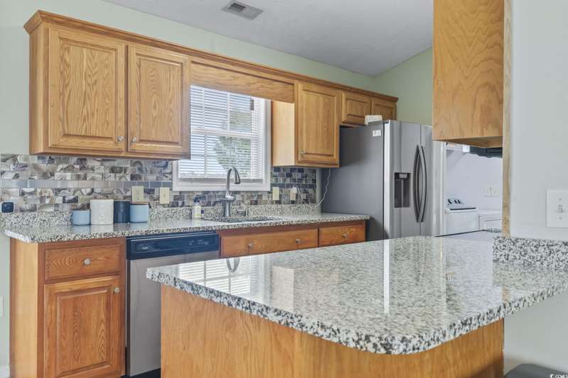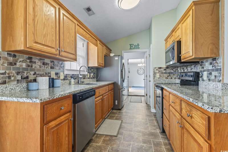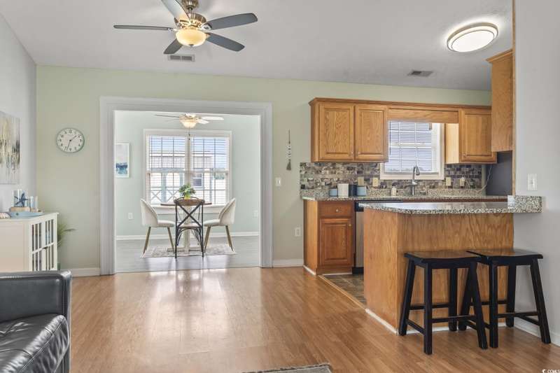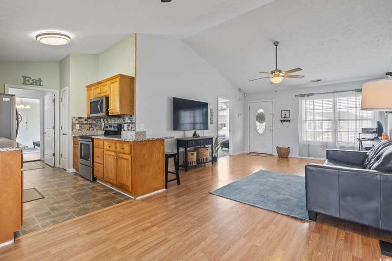 ***HUGE PRICE REDUCTION!!! Motivated Sellers!! NO HOA!! Welcome to this beautifully maintained 4-bedroom, 2-bath ranch-style home nestled in the peaceful Porters Bay community in Loris. From the moment you step inside you are greeted by a bright and airy open floor plan filled with natural sunlight, flowing seamlessly from the formal dining area to the spacious living room. Freshly painted throughout, this home exudes warmth and care. The galley-style kitchen is a chef's delight, featuring stunning solid surface countertops, a stylish tile backsplash, stainless steel appliances, a convenient breakfast bar, a cozy eat-area, and a pantry for extra storage. The guest bathroom has been tastefully updated by previous owners with a new vanity, flooring, mirror, and modern fixtures. The primary suite offers a tranquil retreat with elegant tray ceilings, a walk-in closet, and an ensuite bath complete with a large tiled walk-in shower and dual sinks. Originally a garage, the converted space now provides a versatile recreational or bonus room, or a fourth bedroom that is ideal for guests, hobbies, or a home office. Sliding glass doors lead you to a large patio space, perfect for outdoor entertaining and weekend gatherings. Sitting on a spacious .35 acre lot, this property also has two detached storage sheds and plenty of room for pets to roam with a newly installed privacy fence in 2023. Enjoy the serene country setting along Hwy 701 where you are just minutes from the beaches, but get to enjoy the lifestyle with NO HOA, so you can bring all your toys! Make your appointment today, you will not be disappointed. *One of the sellers is the listing agent **measurements are approximate, buyer is responsible for verification.