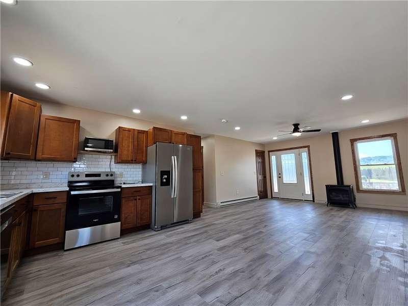 Situated on the outskirts of the quiet town of Jasper, this 950* square foot new construction, ranch style home is waiting for you! Inside, the open concept floor plan provides plenty of space for you to make your own. The kitchen/living room combo boasts plenty of natural light, a propane fire stove, and provides access to the rest of the house. Down the hallway you'll find a full bath, bedroom and primary bedroom with ensuite, and walk in closet. On the opposite side of the house, you'll find the utility room/laundry area, with access to the spacious attached garage. Outside, take in the beauty of the town and surrounding hills, as the covered front porch is a great place to watch the world go by! This property will be parceled with approximately 1 acre prior to closing. Located close to State Route 417 which provides easy access to Hornell, Corning and Bath just over the hill. New construction properties are rare to find in this area, don't miss your opportunity to own this turnkey home!