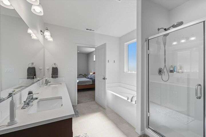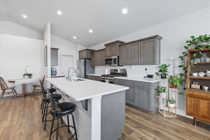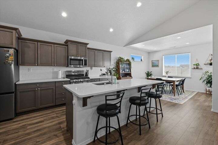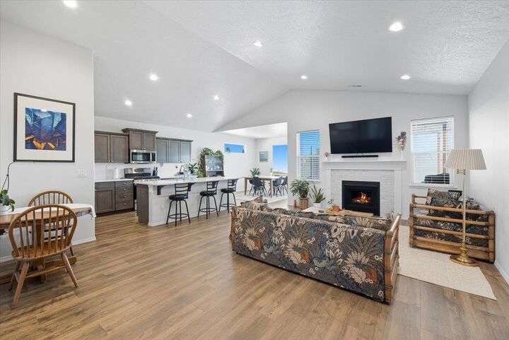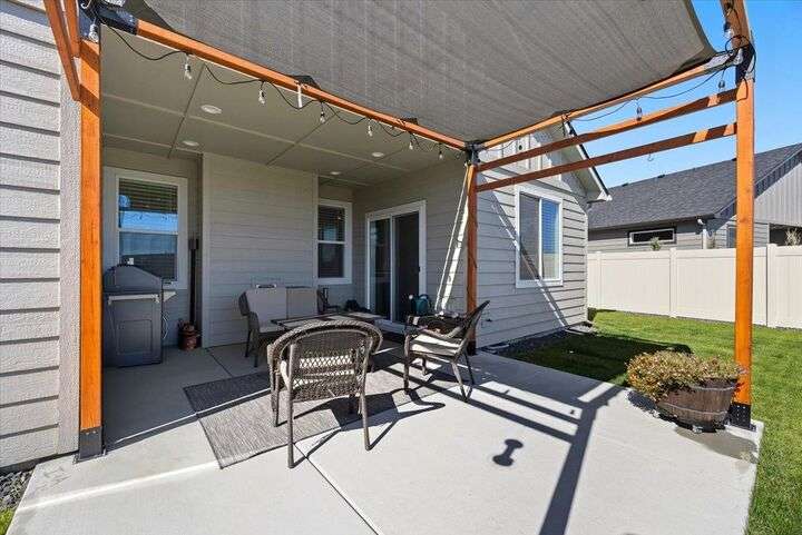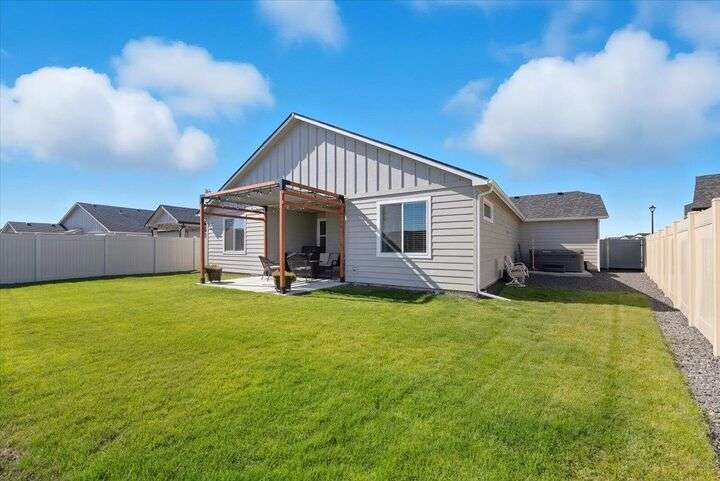 This home is complete and move in ready - All the hard work, and the expense, has been done! Finished front and back yard with sprinklers, fully fenced with a hot tub ( that stays with the home) and a wonderful pergola over the patio. At 1800 square feet on one floor this home is spacious and ready for guests! A huge entertaining kitchen with gas range and walk in pantry has enough space to store all the kitchen gadgets! Or it's almost time for a relaxing soak in the hot tub and a cozy night-in in front of the gas fireplace. This home has a beautifu primary retreat, 2 additional bedrooms and an incredible 3 car oversized garage!