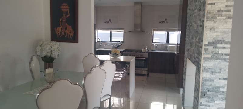 Stunning , modern and elegant , is this 3 bedroom, 2.5 bathroom, double garage property, situated in Helderwyk Estate. The property has modern contemporary finishes, double face fire place , laminated flooring in the bedrooms, and spacious rooms just perfect for a modern family. The entertainment area boasts a braai area overlooking a manicured garden with a sparkling pool. The Estate boast a private school, communal gym and ecolifestye.