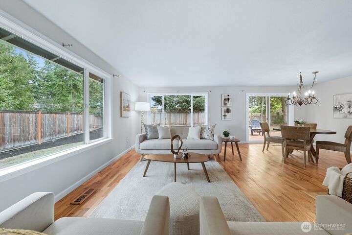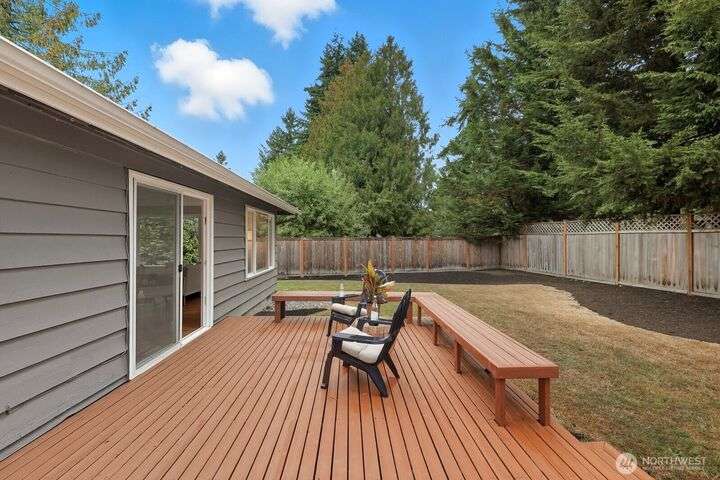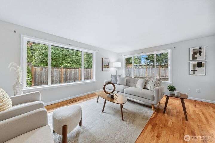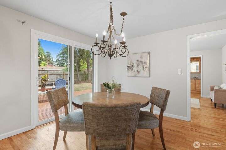 Enjoy living in Juanita, a fantastic location w/ numerous convenient amenities nearby; Lake Washington Loop Bike Trail, St. Edwards State Park, Gillman Trail, restaurants, parks and easy access to I-405,Hwy 522, I-5, yet a tranquil location. This address is part of the Northshore school district. About this home, meticulously maintained 1 story home with 4 bedrooms, 2 bathroom, well equipped, bright kitchen with ample storage. Gorgeous solid oak floors throughout all the bedrooms, dining and living room w/ a cozy two sided fireplace. Living and dining room is open concept with a sliding glass door out to back deck. Mature landscaping w/ a fully fenced backyard, yours to make your own.